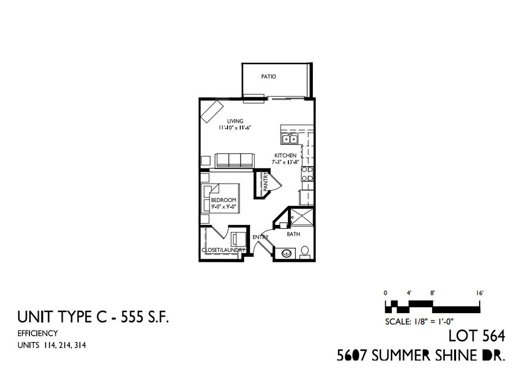 Efficiency-Model C - Floorplan 2 Apartment Unit: 5615-107Apartment Model: Efficiency-Model C$1,330Studio, 1 Bath, 555 sq ftAvailable Now1 Bedroom
