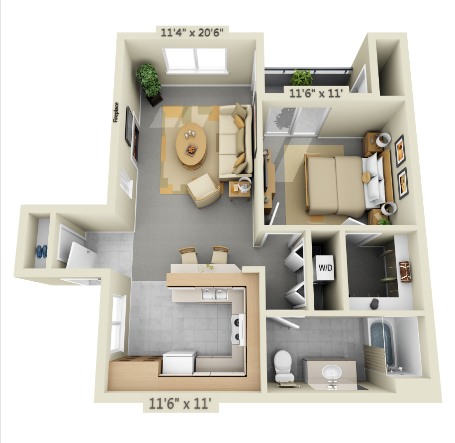 Apartment Model: Willow II1 Bedroom, 1 Bath, 746 sq ftAvailable Now![]()