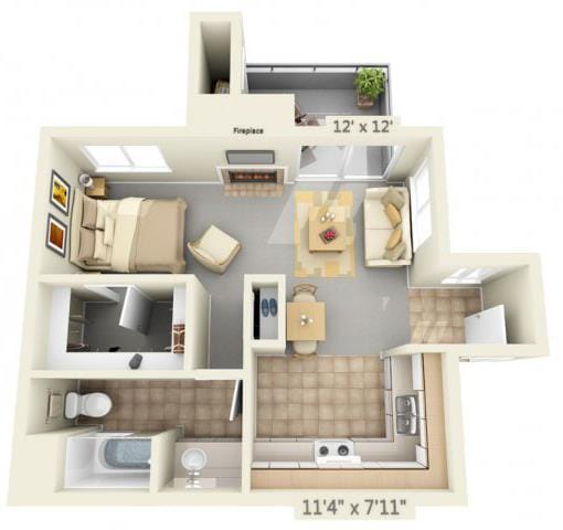 Apartment Model: Willow1 Bedroom, 1 Bath, 700 sq ftAvailable Now![]()