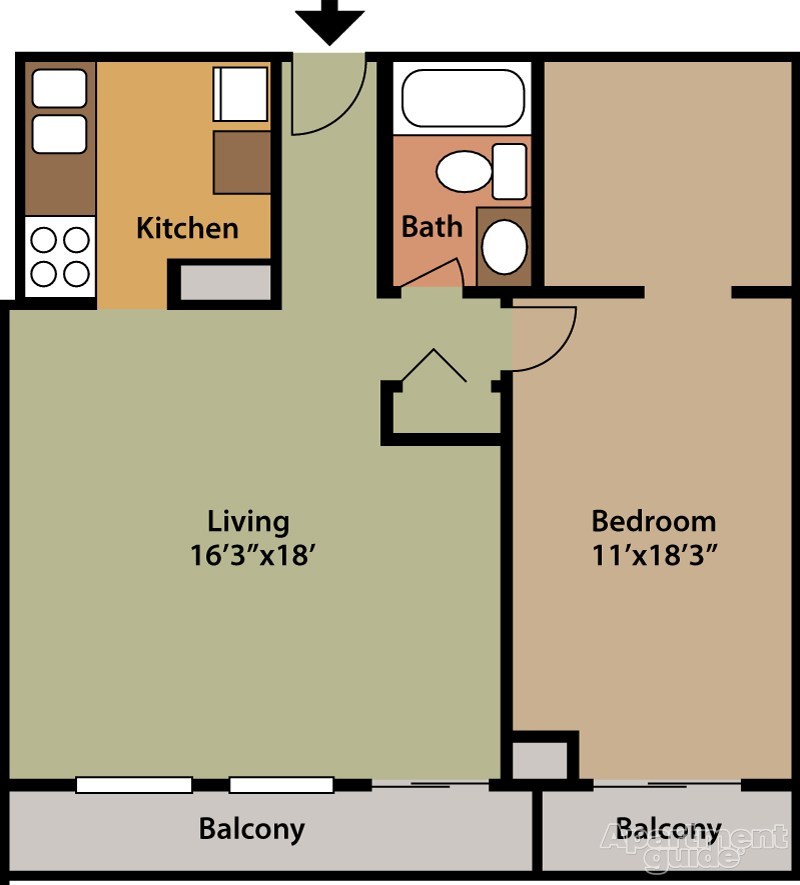 Apartment Model: The SycamoreStudio, 1.5 Bath, 600 sq ftUnavailableThe Sycamore - Floorplan 1 1 Bedroom