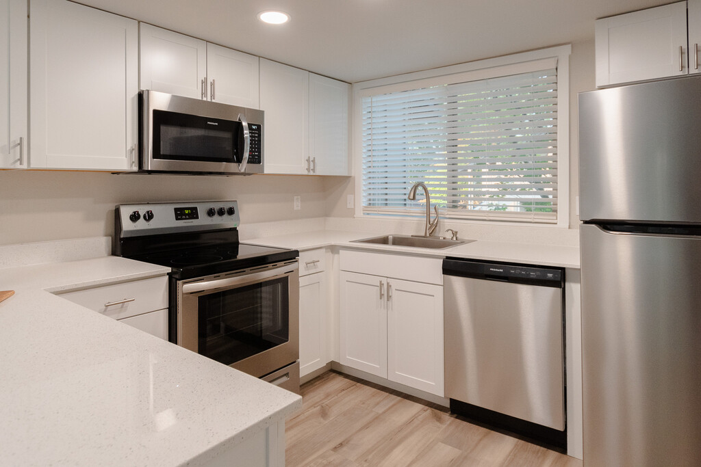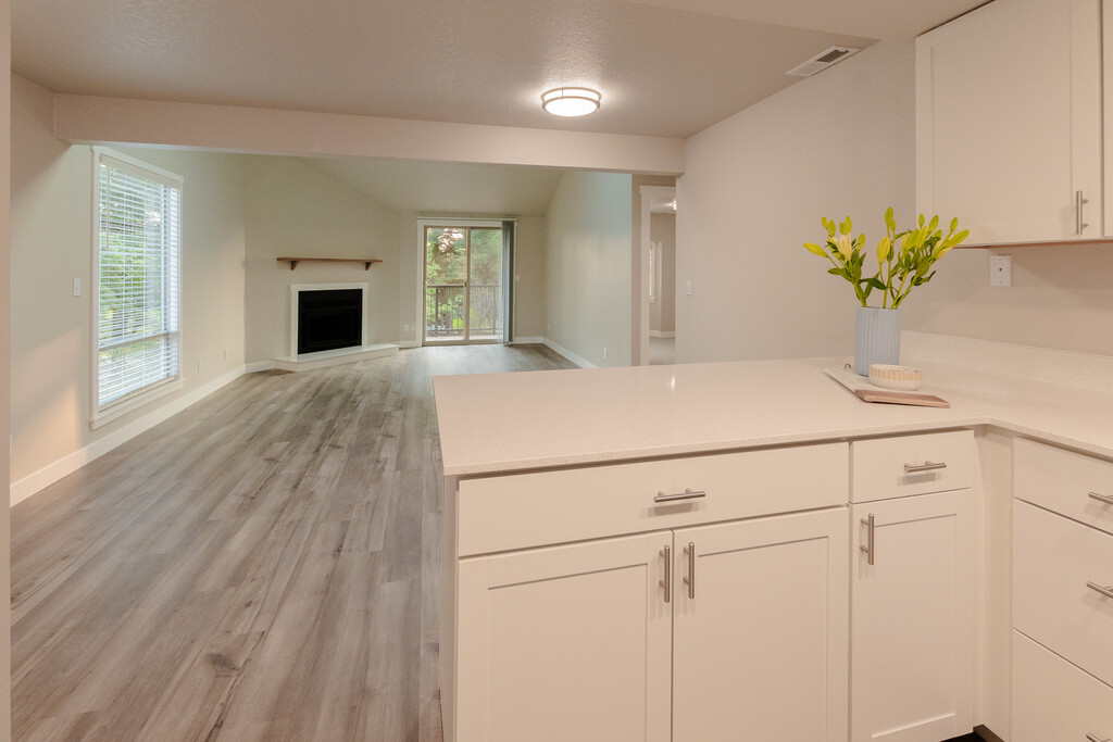 The Autumn Wood Community features 2 bedrooms, 1 bathroom floor plans. Each apartment home is 1,020sf. with a washer/dryer and fireplace, designated living room and dining room space, sunken living rooms, and all upcoming apartment homes are in the process of being remodeled to display new carpet and luxury plank flooring, updated cabinets, stainless steel appliances, quartz countertops, central heating and cooling, and more. Certain homes feature vaulted ceilings. Located off a residential street parallel to Lake Road, the Autumn Wood Community is conveniently located less than 3/4 mile from the I-205 on ramp while remaining in a serene, neighborhood setting. Spend your free time at one of many things to do in the city of Milwaukie and neighboring cities including visiting the Milwaukie, Happy Valley, and West Linn Farmer’s Markets! Meet up with friends at the Corner 14 Food Carts in Oregon City or at Happy Valley Station or head to Mike’s Drive-in for a burger basket and have a picnic at one of the nearby parks. Like to stay busy? Check out the Summer Concert Series at Ardenwald Park, enjoy an afternoon or evening at the Milwaukie Bowling Alley, or check out the fishing and waterspouts at The Milwaukie Bay park! Access all the groceries you need with Walmart, Target, Costco, Fred Meyer, Safeway, Grocery Outlet, and WinCo all within 5 miles of home. A New Seasons just a couple miles from our community is scheduled to be completed Fall of 2023!