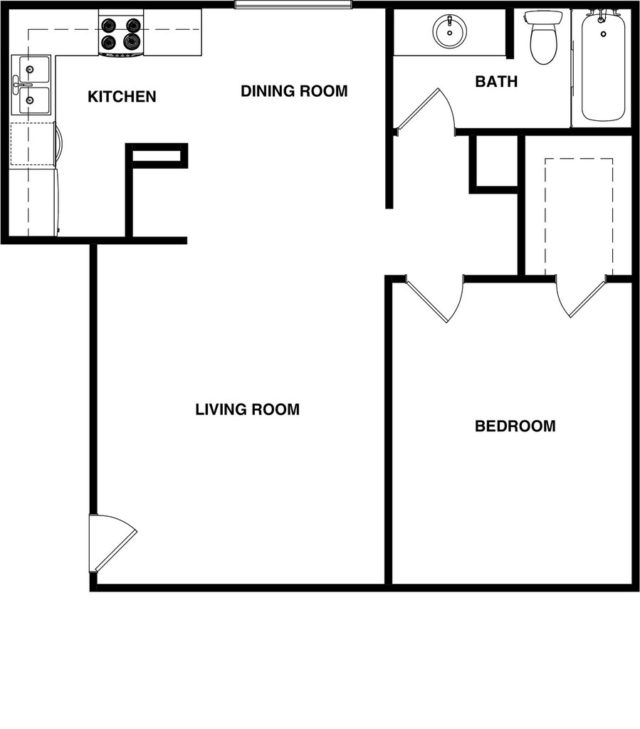 1 Bed, 1 bath - Floorplan 1 1 Bed, 1 bath