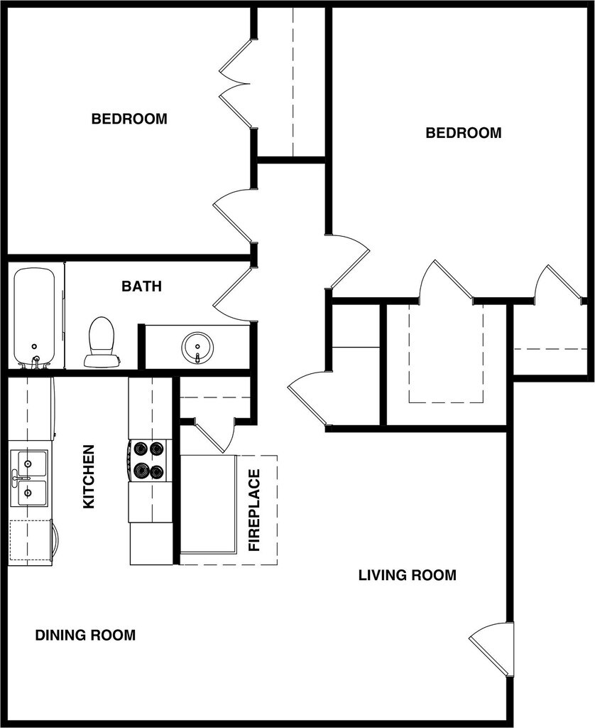 2 Beds, 1 bath - Floorplan 1 2 Bedroom Large