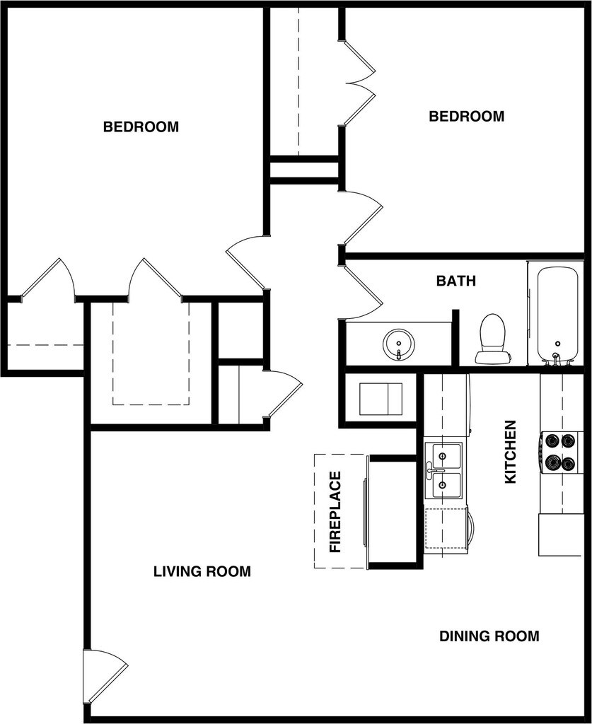 1 Bed, 1 bath - Floorplan 1 2 Bedrooms