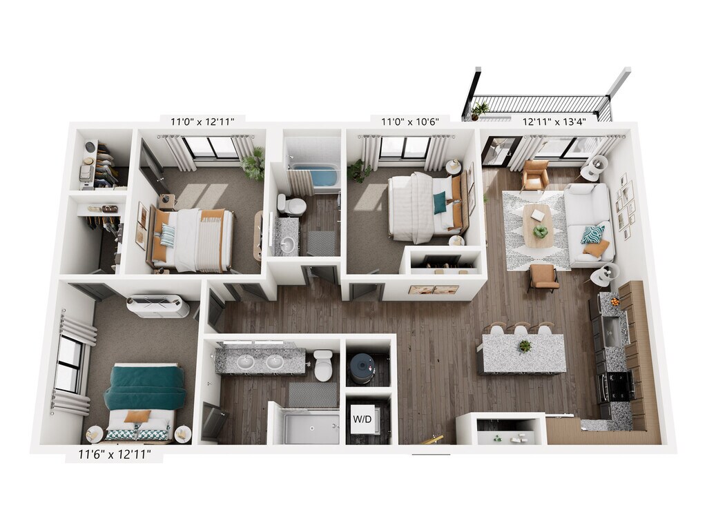 1 Bed, 1 Bath, 837 sq ftAvailable NowLargest 1 BedroomThis is the largest 1 Bedroom at this PropertyModel Gallery