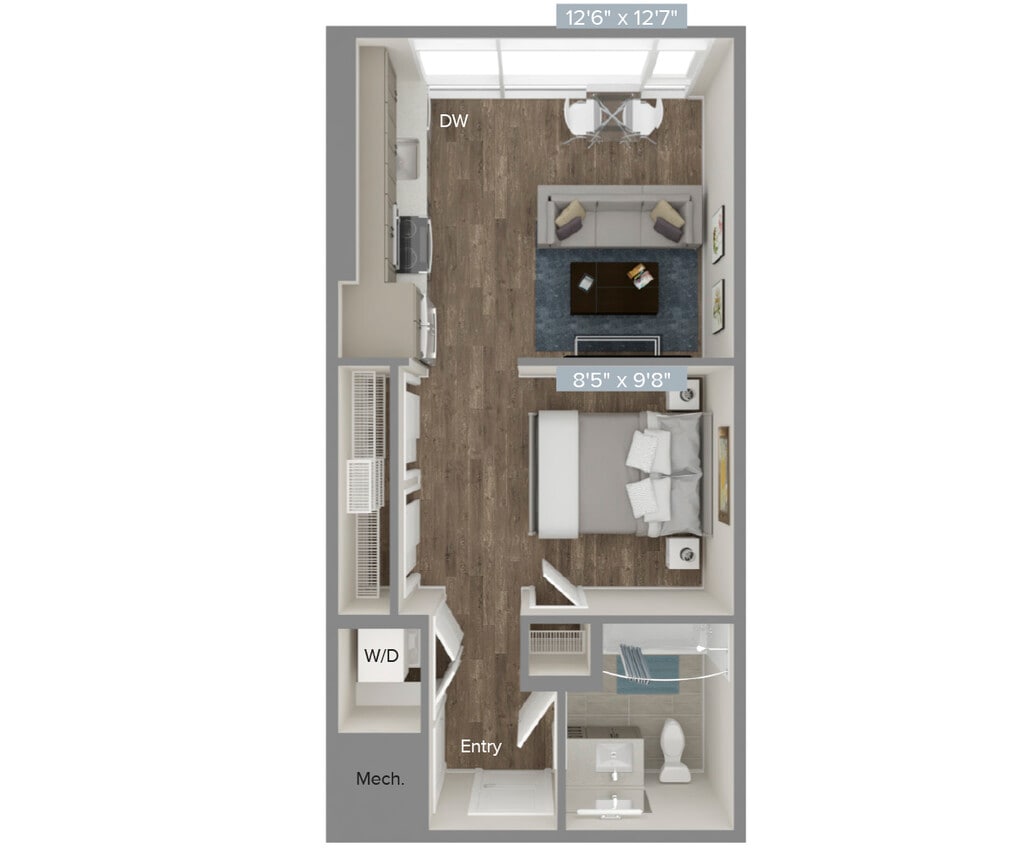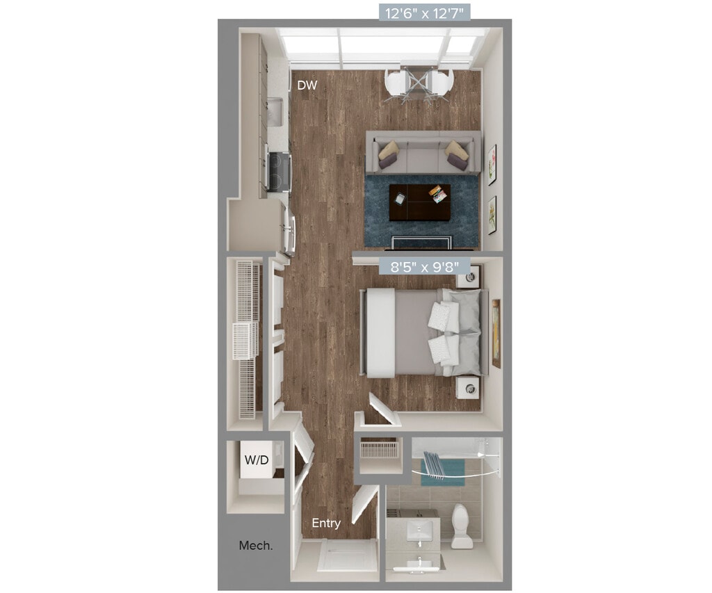 Studio, 1 Bath, 511 sq ftAvailable NowModel Gallery