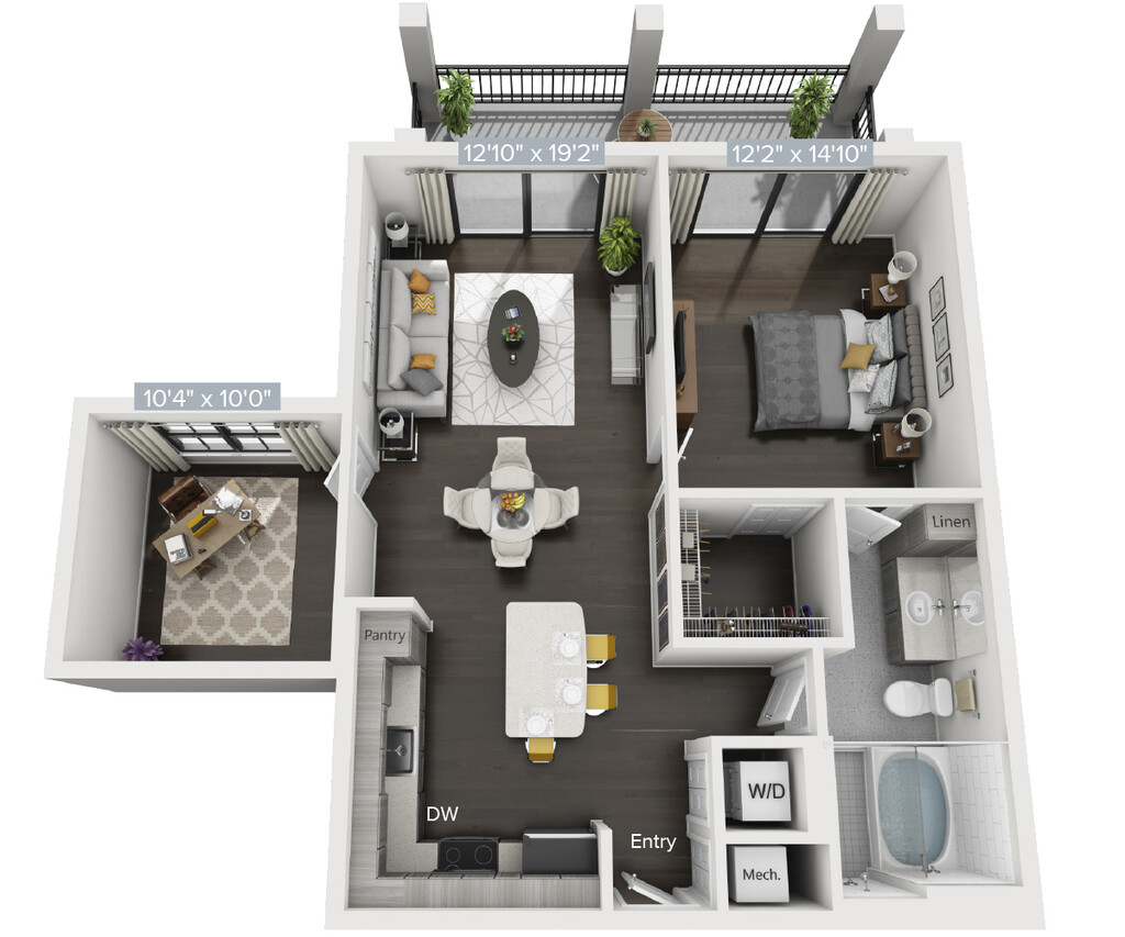 1 Bed, 1 Bath, 975 sq ftAvailable NowLargest 1 BedroomThis is the largest 1 Bedroom at this PropertyModel Gallery