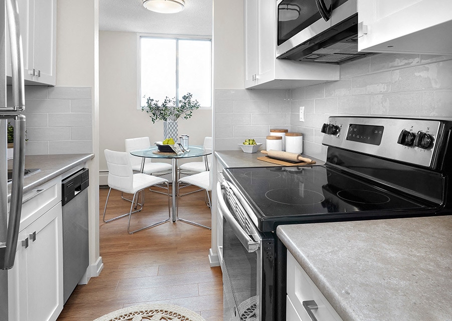 Avalon Apartments 99 Avenue & 105 Street: Set in a beautiful downtown rental community Avalon Apartments is an upscale rental community in beautiful downtown Edmonton. Suites in this 14 storey high-rise offer residents excellent views of the River Valley and downtown. Whether you're looking for a scenic suite or a convenient location near shopping and transit we've got what you're looking for. Our location Avalon Apartments is located in Rossdale minutes from RJW Mather Memorial Park, Legislative grounds, Jasper Avenue and the River Valley. It is very close to shopping and dining on Jasper Avenue, numerous bus routes, and The Corona and Bay Enterprise Square LRT Stations are within walking distance. This excellent downtown location is a great choice for your new home. Our suites Enjoy our generously sized open concept apartments. Each freshly painted suite features fridge, stove, dishwasher and over the range microwave (in most suites), in-suite storage, luxury vinyl plank flooring and window coverings. Choose from a bachelor, one or two bedroom suite.To make budgeting a bit easier, utilities are included in the rent. This is the perfect place to call home.