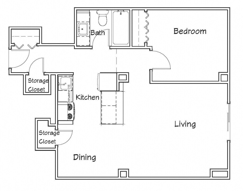 1 Bed 1 Bath A - Floorplan 1 1 Bed 1 Bath A
