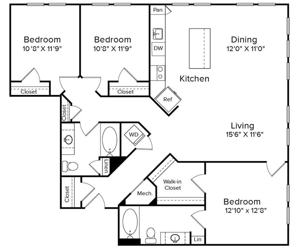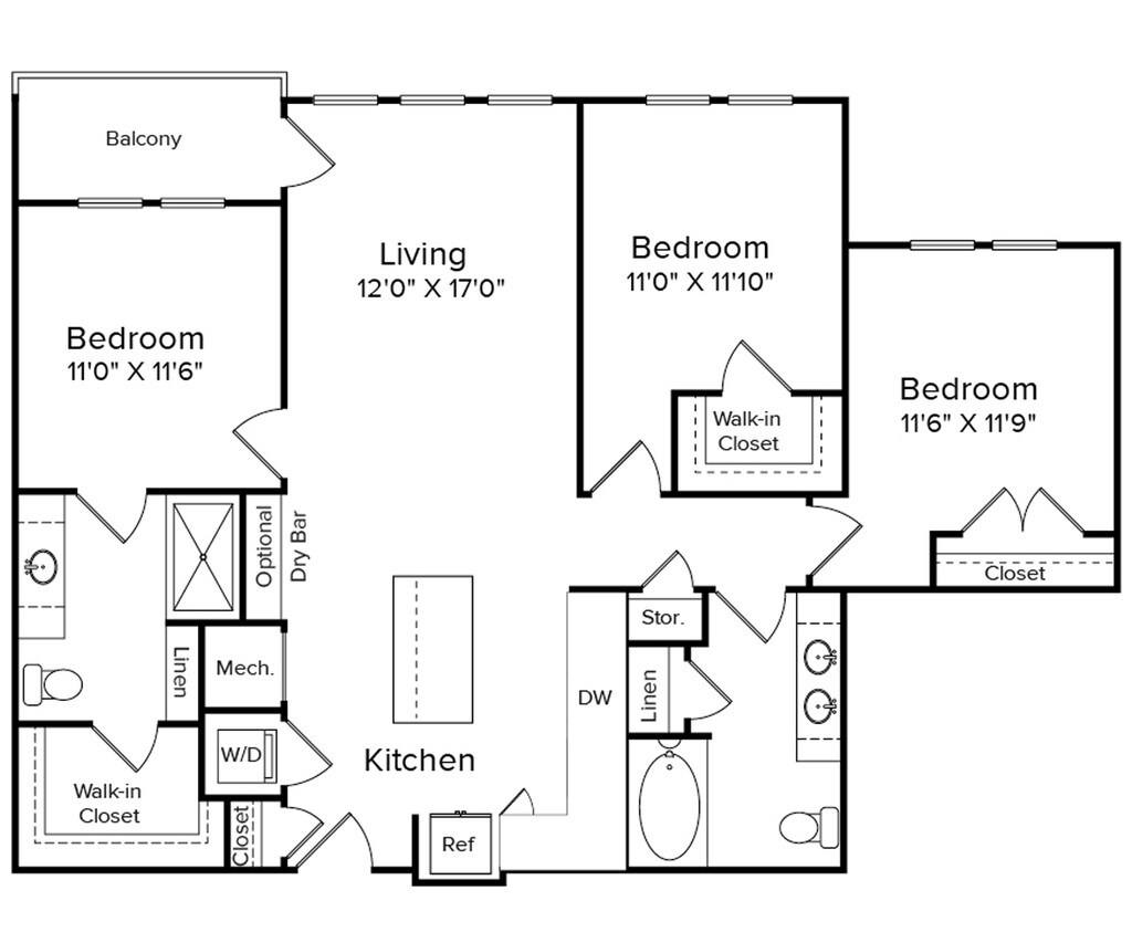 Apartment Model: A3-B-764From $1,9441 Bedroom, 1 Bath, 764 sq ftAvailable Now![]()