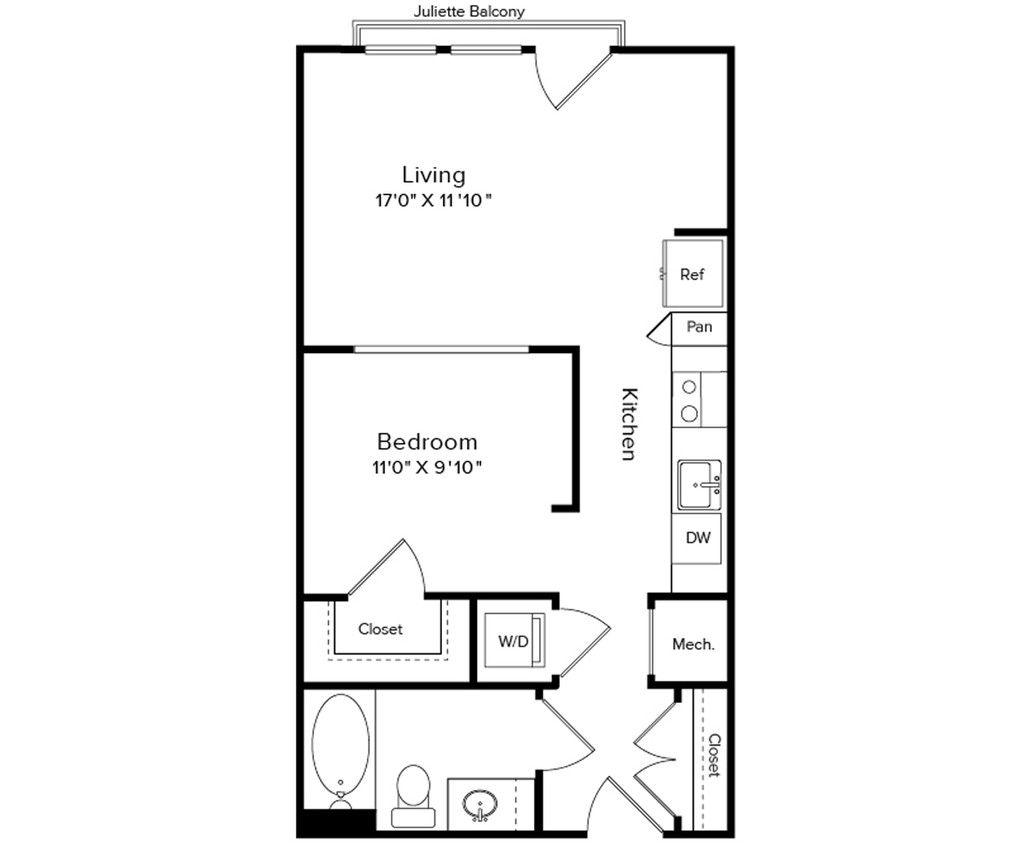 Apartment Model: S1-587Studio, 1 Bath, 587 sq ftUnavailableS1-587 - Floorplan 1 1 Bedroom