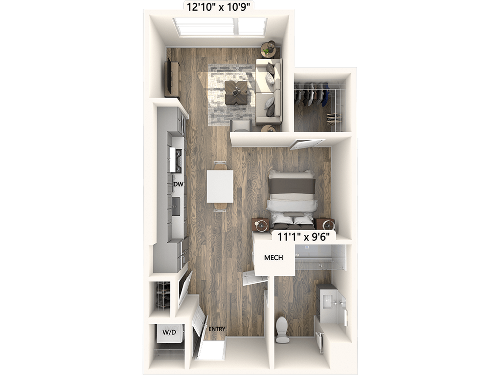 Apartment Model: S1-612sf$3,275Studio, 1 Bath, 612 sq ftAvailable June 17, 2026Floor plans are artist's rendering. All dimensions are approximate. Actual product and specifications may vary in dimension or detail. Not all features are available in every rental home. Please see a representative for details.