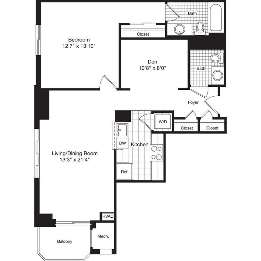 Apartment Model: 724-bFrom $2,6361 Bedroom, 1 Bath, 724 sq ftAvailable May 21, 2026Floor plans are artist's rendering. All dimensions are approximate. Actual product and specifications may vary in dimension or detail. Not all features are available in every rental home. Please see a representative for details.
