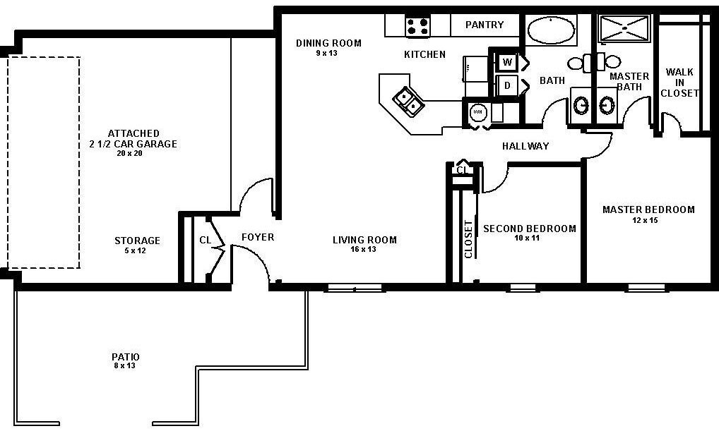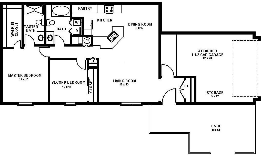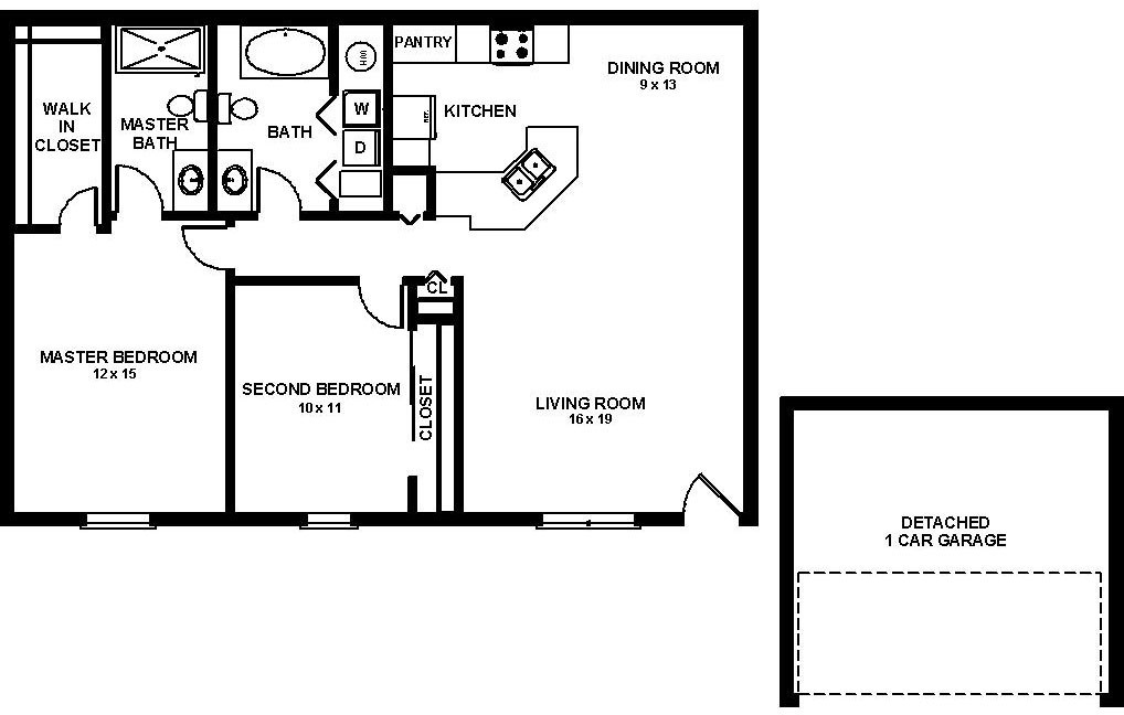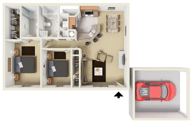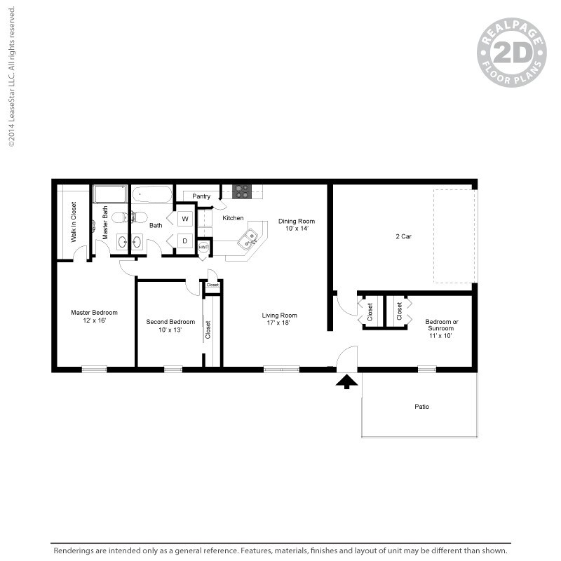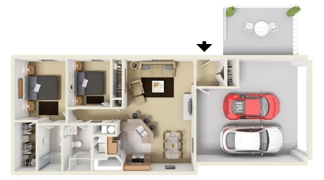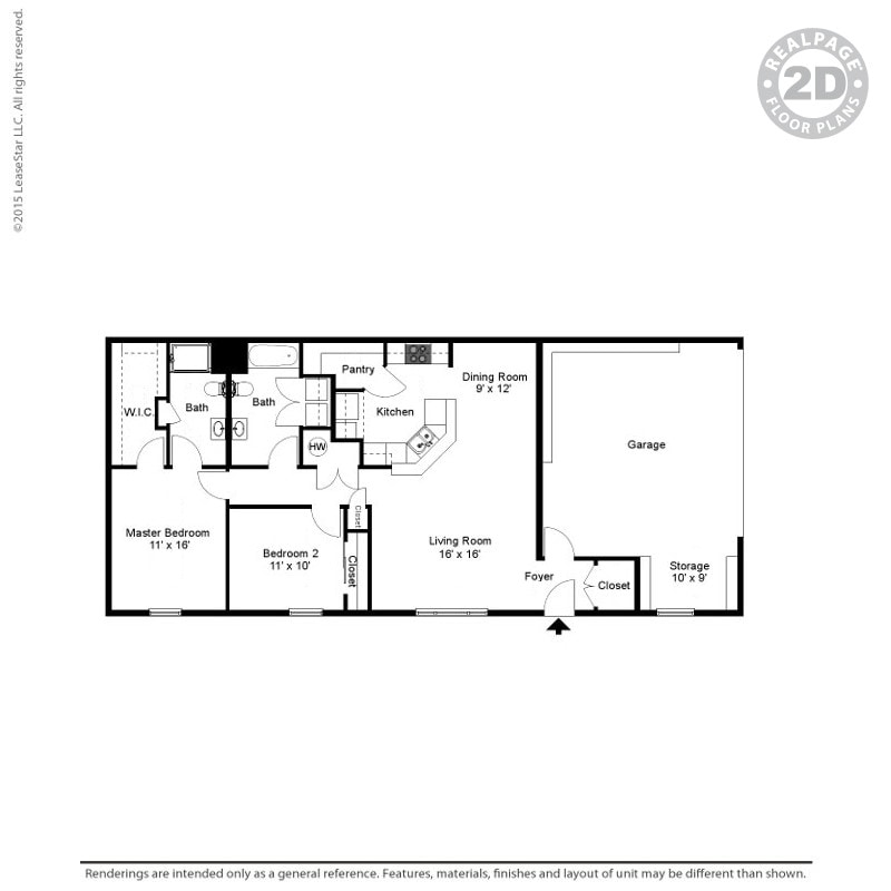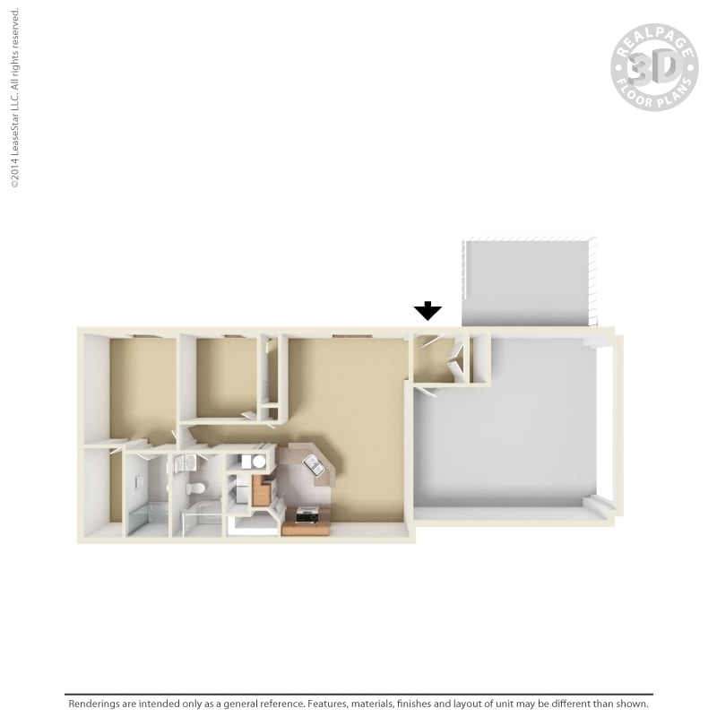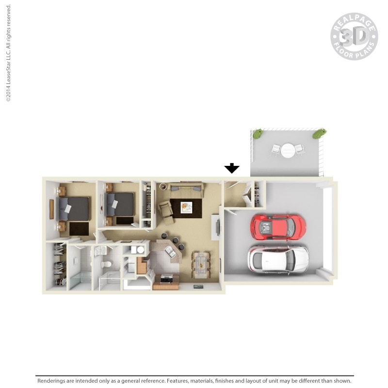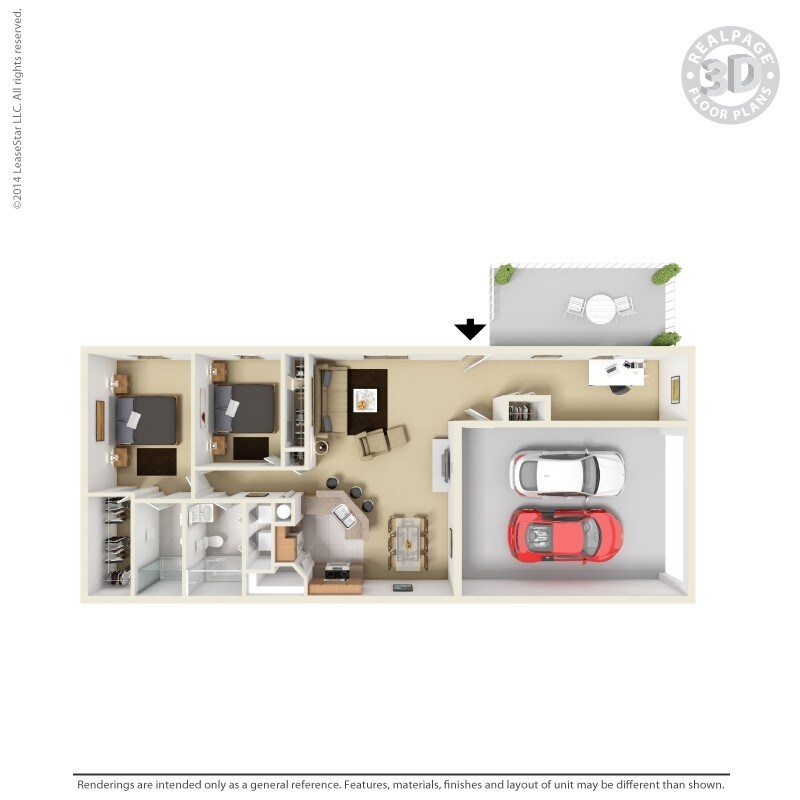 2 Beds, 2 Baths, 1297 sq ftLargest 2 BedroomThis is the largest 2 Bedroom at this PropertyModel Gallery