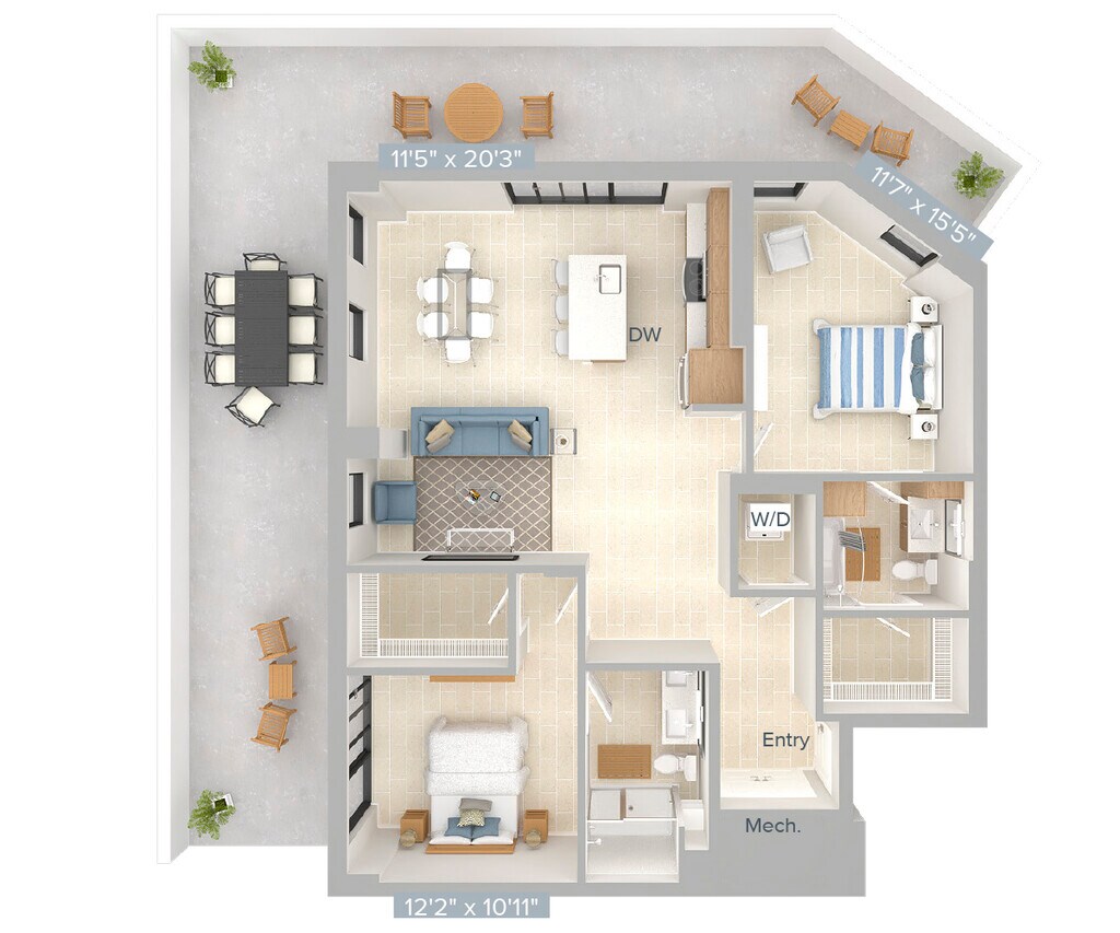Apartment Model: A3-786From $2,5951 Bedroom, 1 Bath, 786 sq ftAvailable April 28, 2026![]()