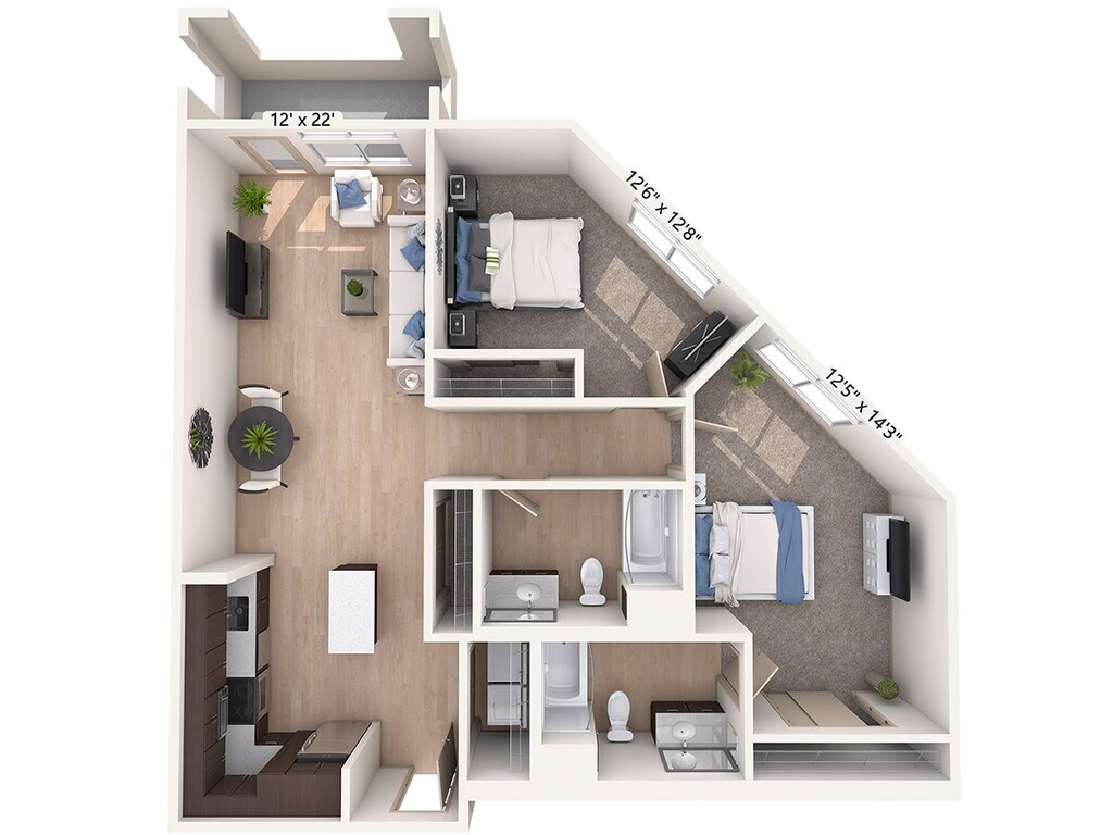 A6-D-Two - Floorplan 1 Apartment Unit: 002-557Apartment Model: A6-D-Two$2,5701 Bedroom, 1 Bath, 842 sq ftAvailable NowA5-Two-carpet