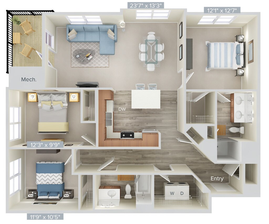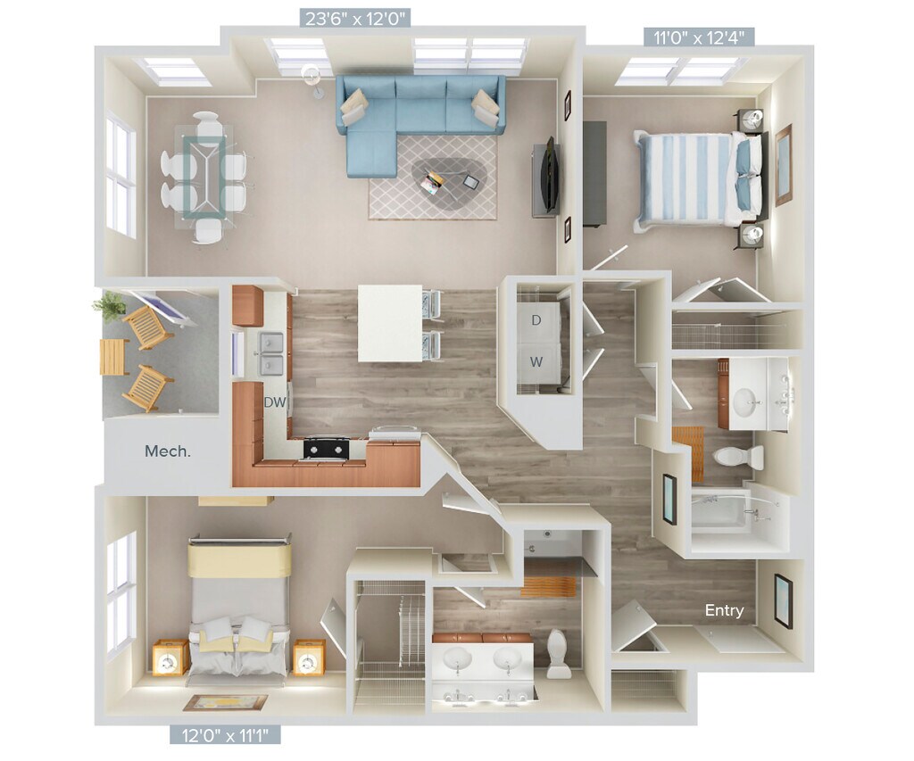 Apartment Model: B2-1180-ter$3,3042 Bedroom, 2 Bath, 1180 sq ftAvailable Now![]()