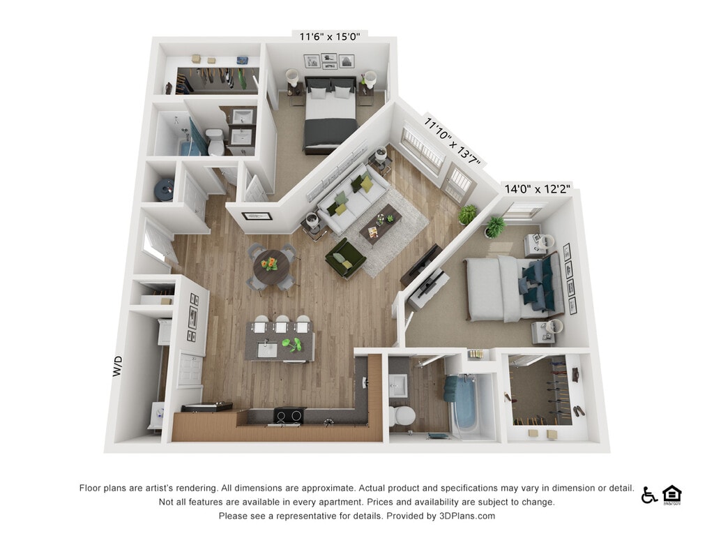 Apartment Model: B6$2,6222 Bedroom, 2 Bath, 1306 sq ftAvailable April 19, 2026Floor plans are artist's rendering. All dimensions are approximate. Actual product and specifications may vary in dimension or detail. Not all features are available in every rental home. Please see a representative for details.