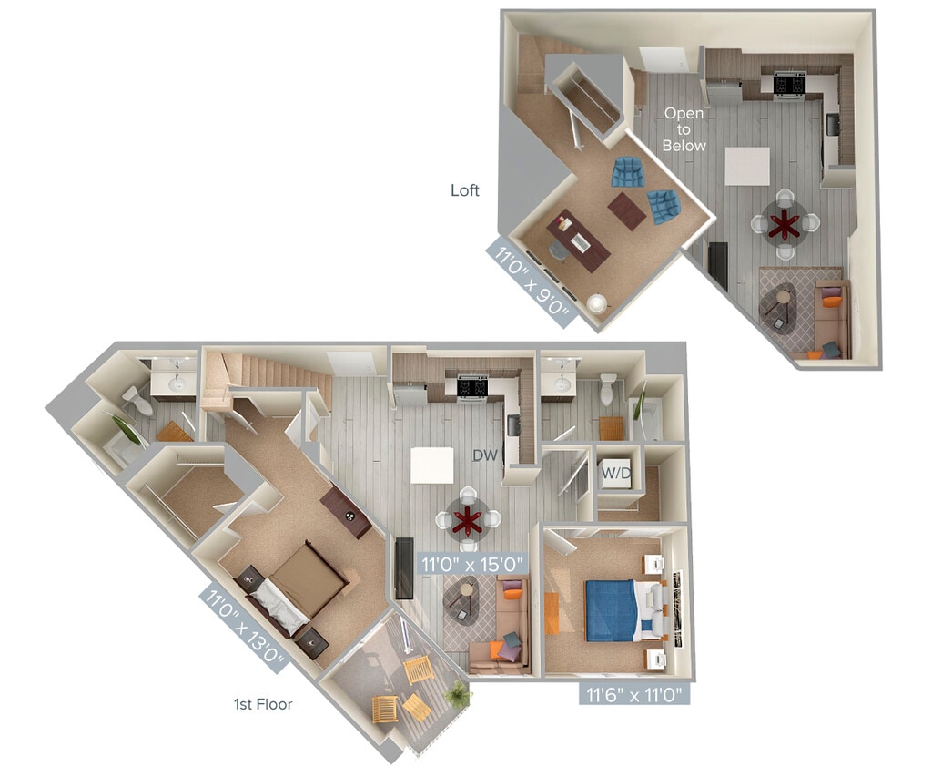 1 Bed, 1 Bath, 845 sq ftAvailable NowLargest 1 BedroomThis is the largest 1 Bedroom at this PropertyModel Gallery
