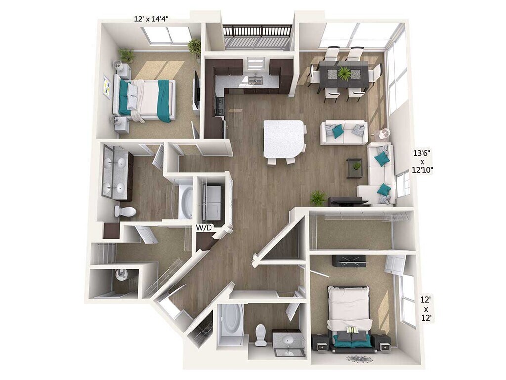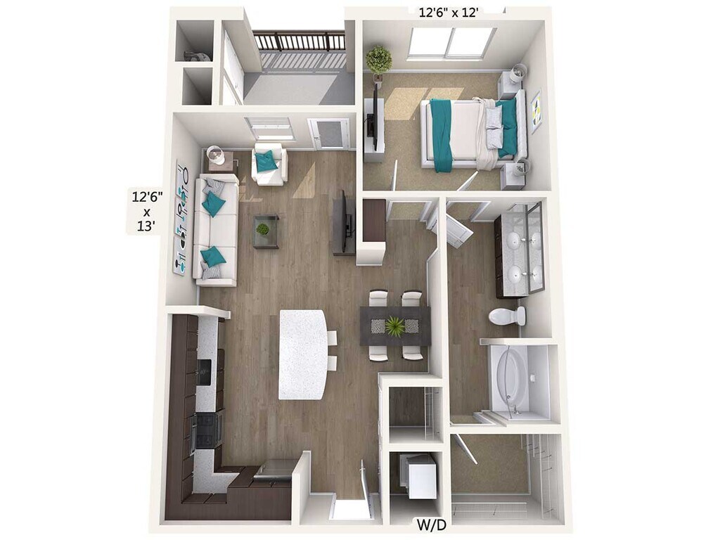 Apartment Model: A12From $2,8581 Bedroom, 1 Bath, 726 sq ftAvailable Now![]()