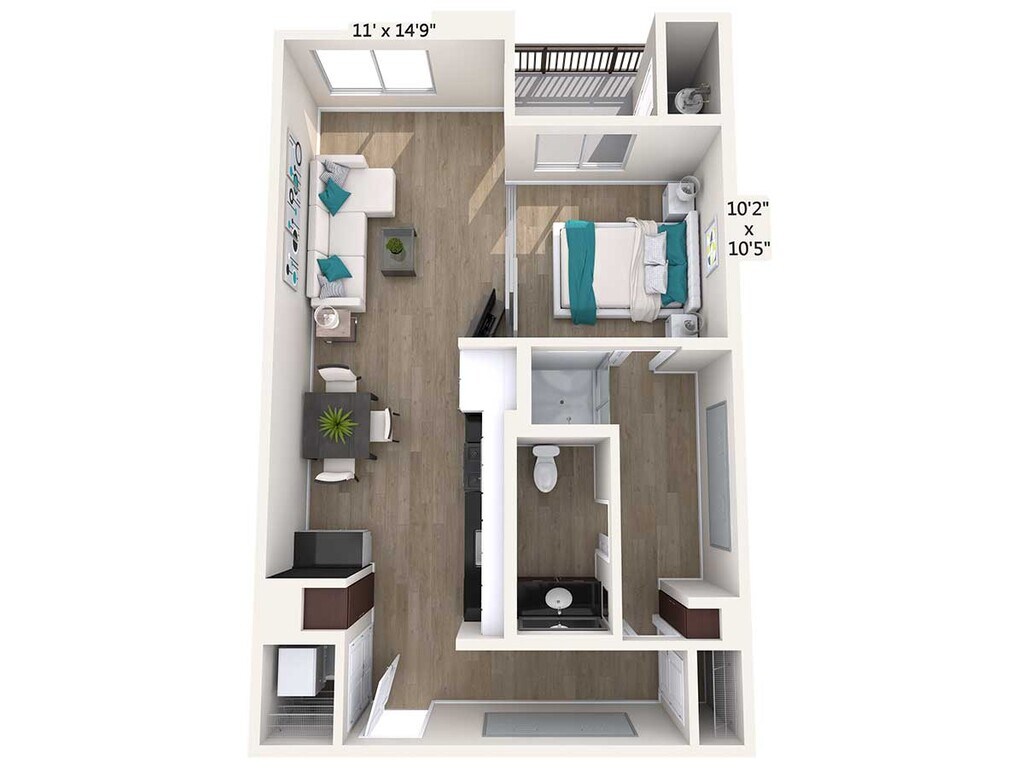 1 Bed, 1 Bath, 615 sq ftAvailable NowModel Gallery