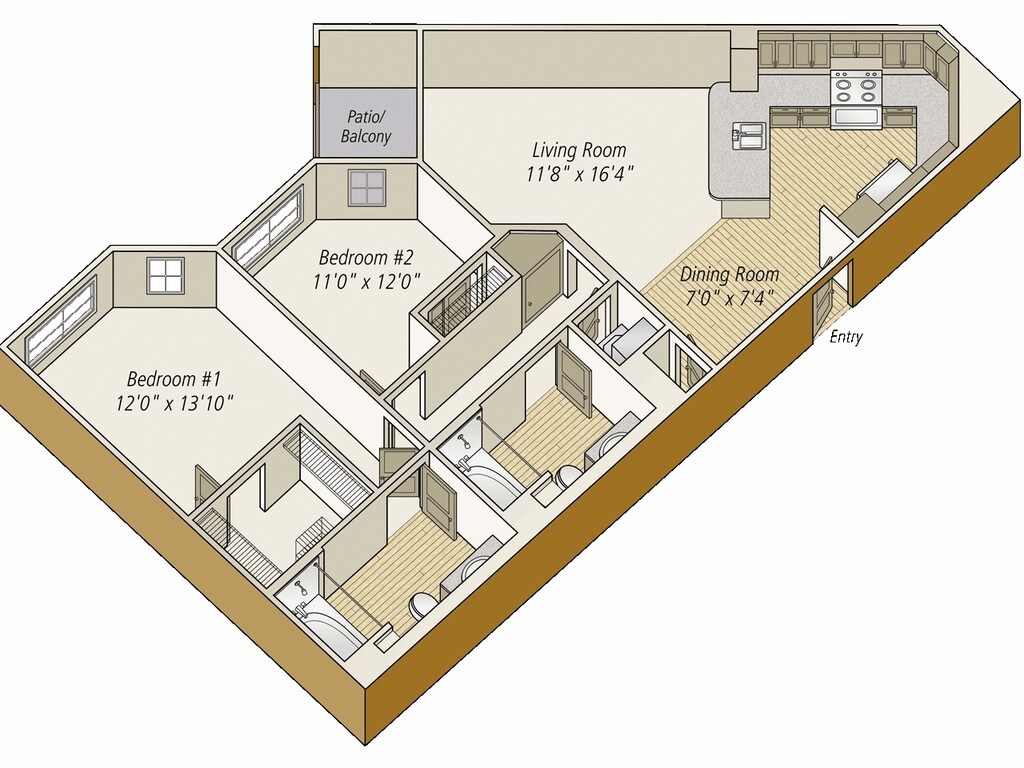 1 Bed, 1 Bath, 670 sq ftAvailable NowModel Gallery