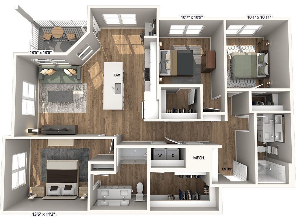 Apartment Model: B3HC-1185$1,6452 Bedroom, 2 Bath, 1185 sq ftAvailable Now![]()