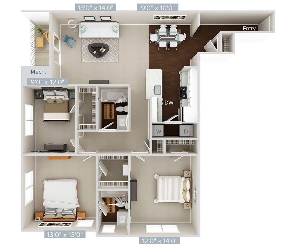 Apartment Model: B1-940From $3,2002 Bedroom, 1 Bath, 940 sq ftAvailable Now![]()