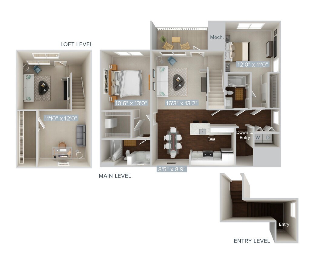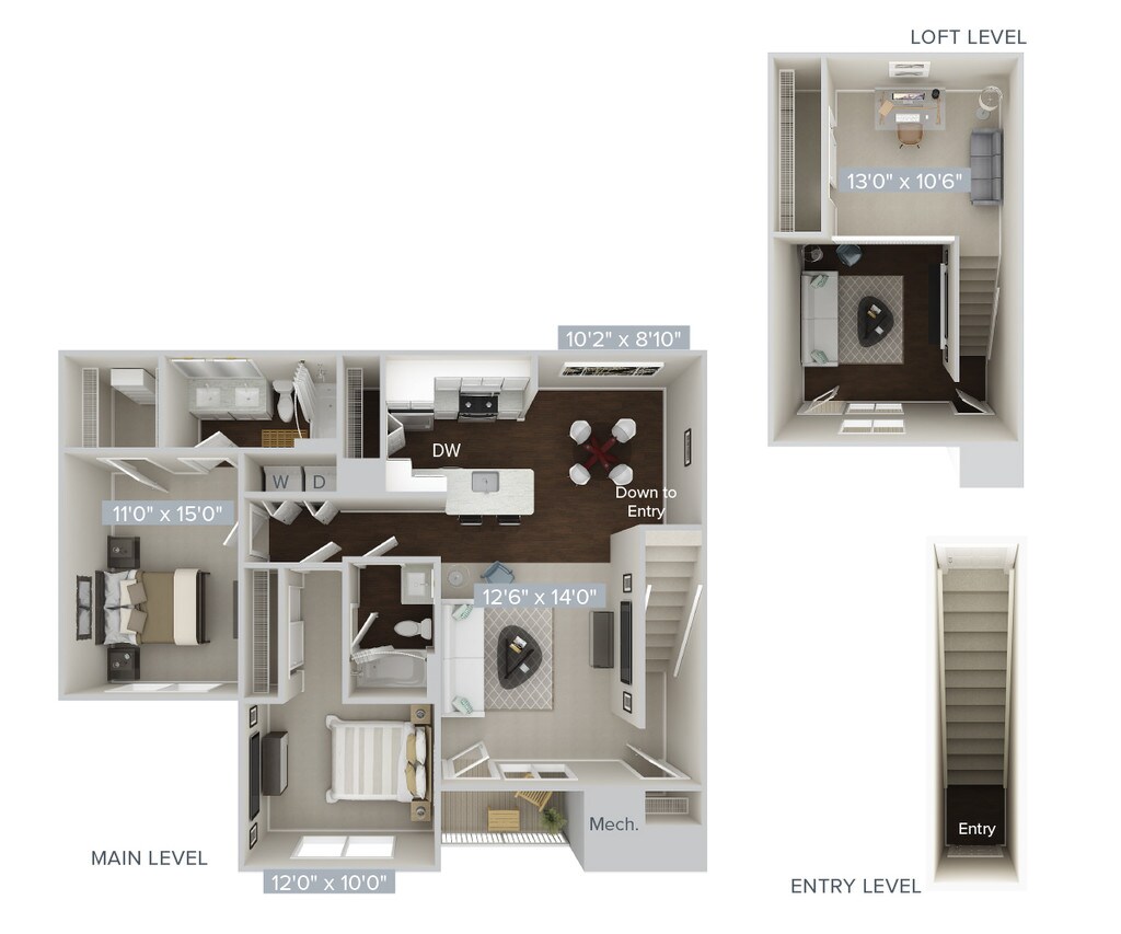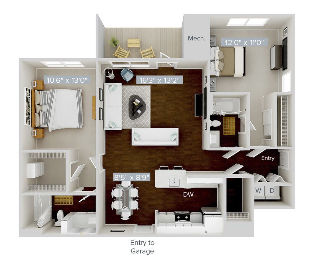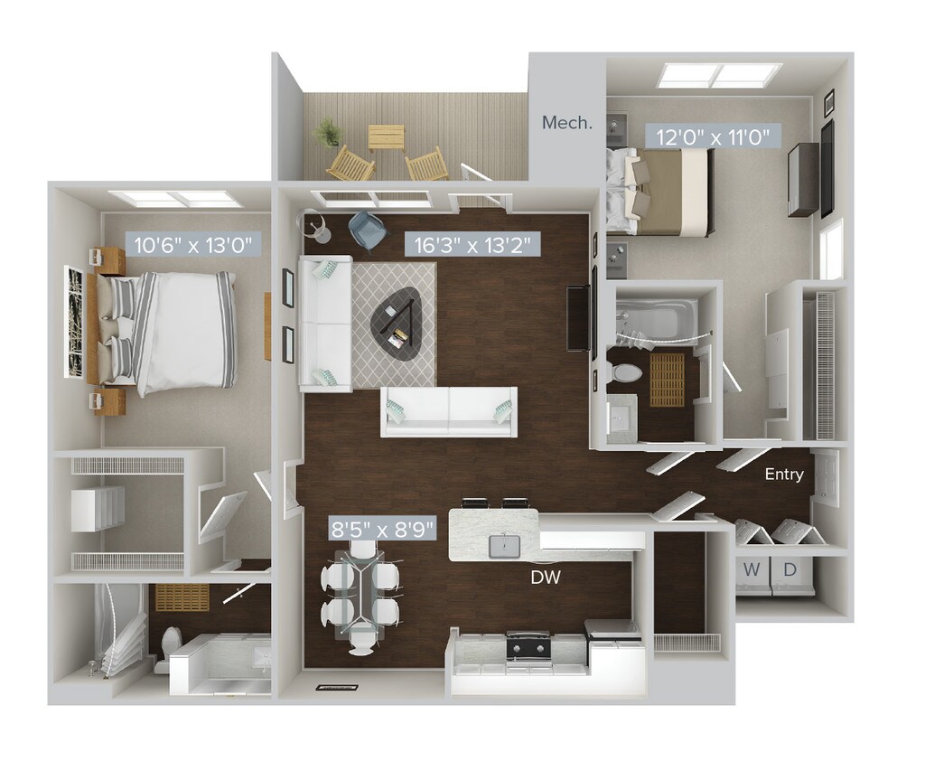 2 Beds, 2 Baths, 1073 sq ftAvailable NowModel Gallery
