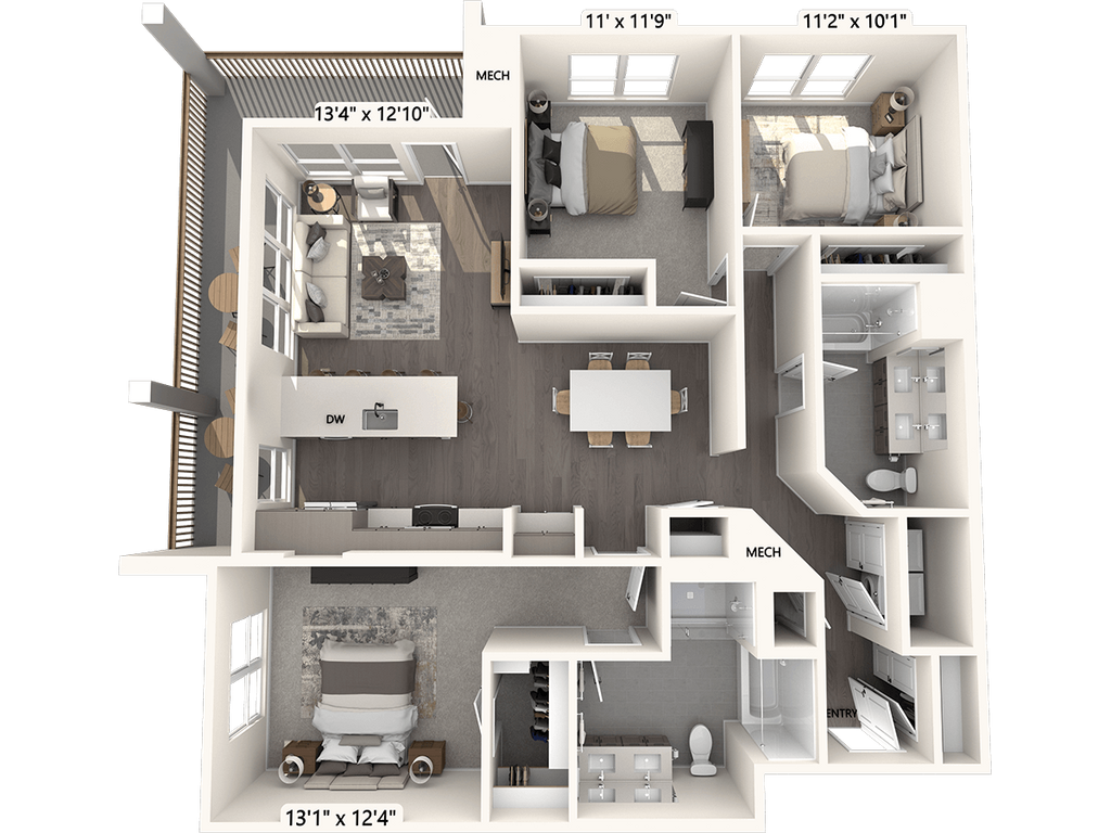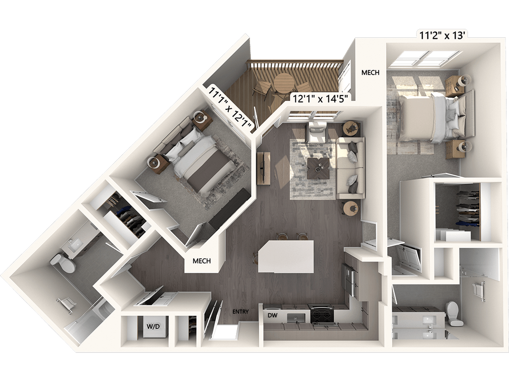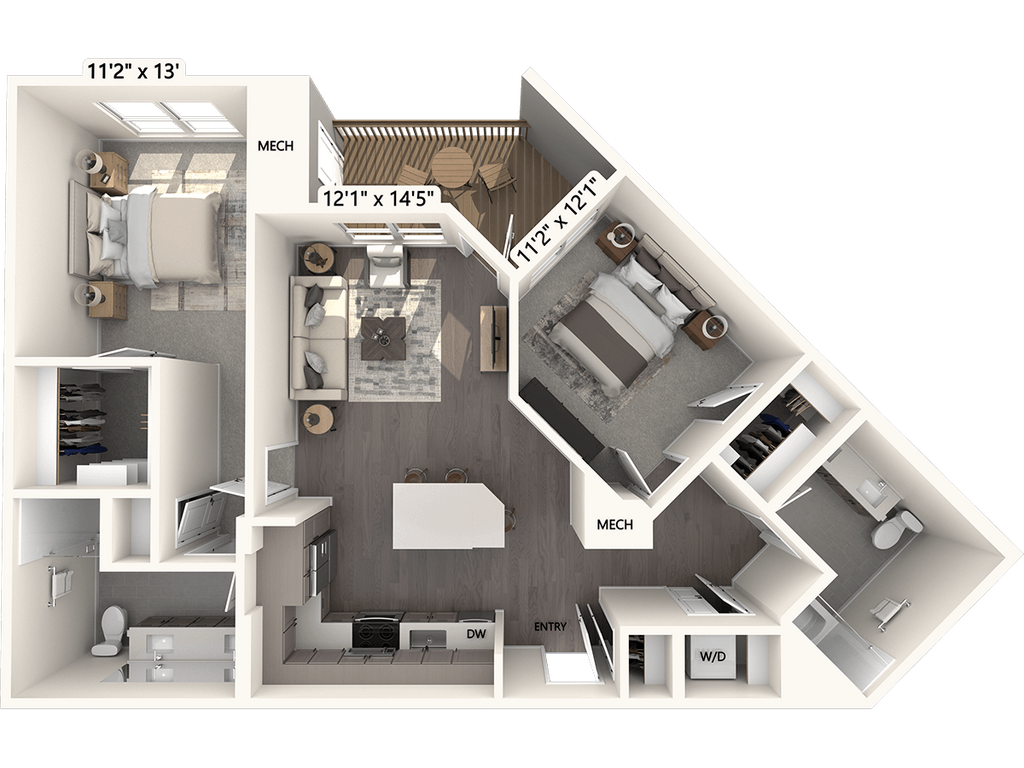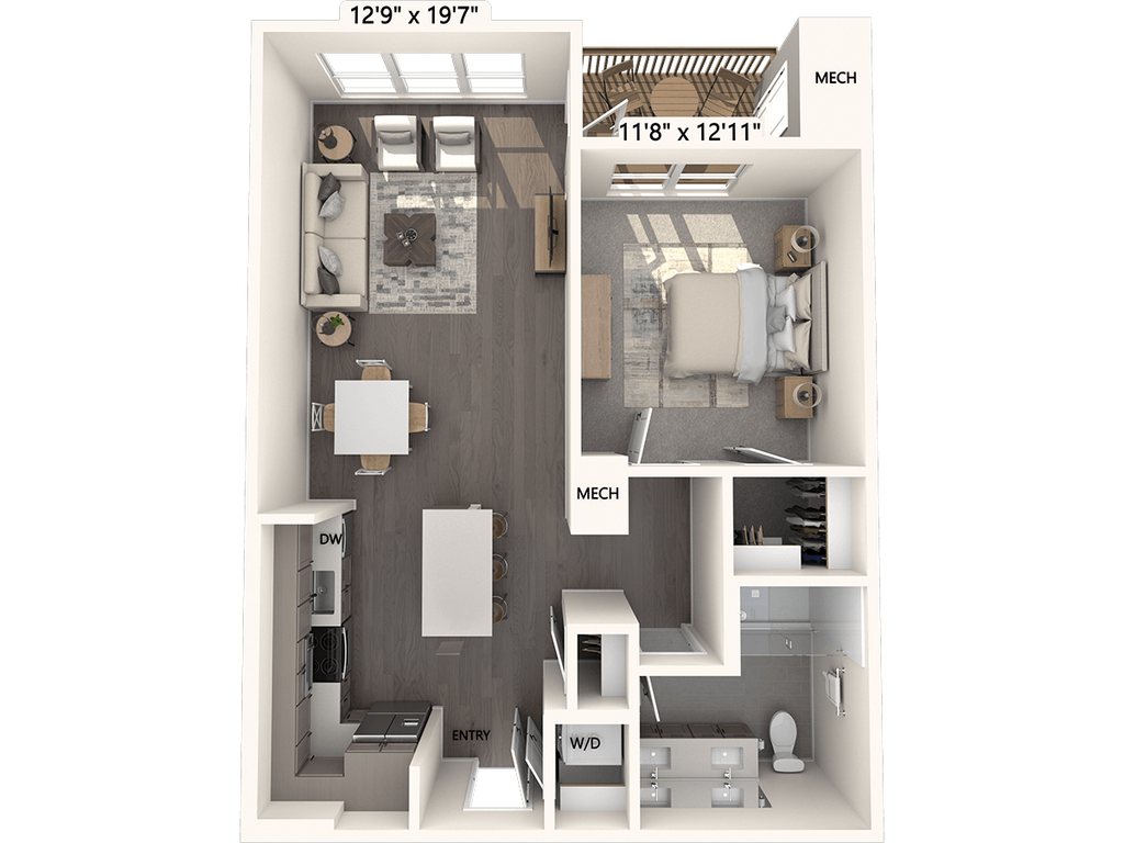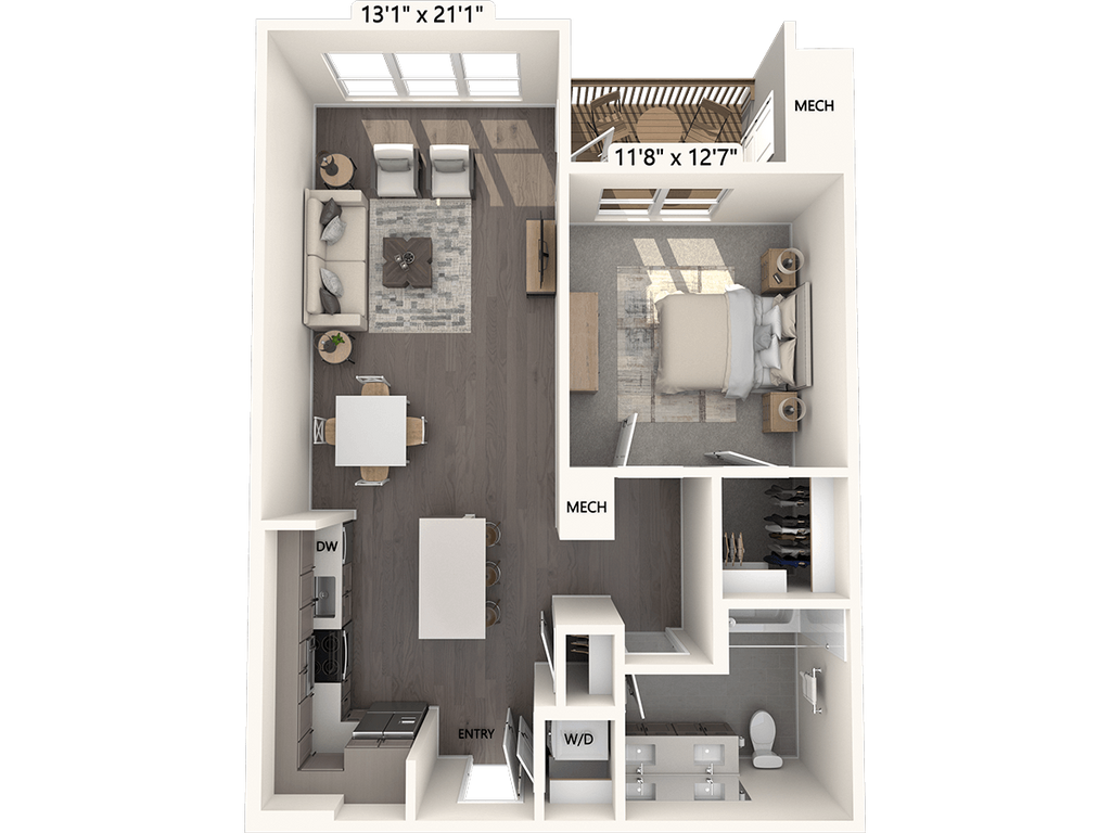 Apartment Model: AM14.2From $2,4801 Bedroom, 1 Bath, 803 sq ftAvailable NowFloor plans are artist's rendering. All dimensions are approximate. Actual product and specifications may vary in dimension or detail. Not all features are available in every rental home. Please see a representative for details.