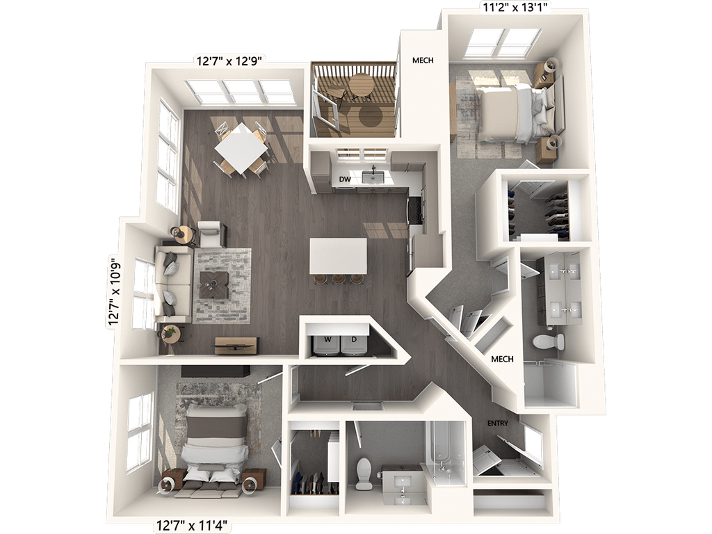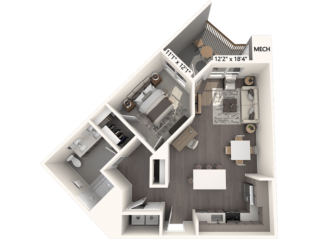 1 Bed, 1 Bath, 1123 sq ftAvailable NowLargest 1 BedroomThis is the largest 1 Bedroom at this PropertyModel Gallery