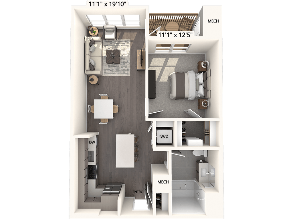 Apartment Model: SM05From $1,975Studio, 1 Bath, 523 sq ftAvailable NowFloor plans are artist's rendering. All dimensions are approximate. Actual product and specifications may vary in dimension or detail. Not all features are available in every rental home. Please see a representative for details.