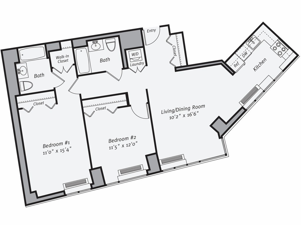 A5 - Floorplan 1 Apartment Unit: 2010Apartment Model: A51 Bedroom, 1 Bath, 722 sq ftAvailable NowFloorplan A16