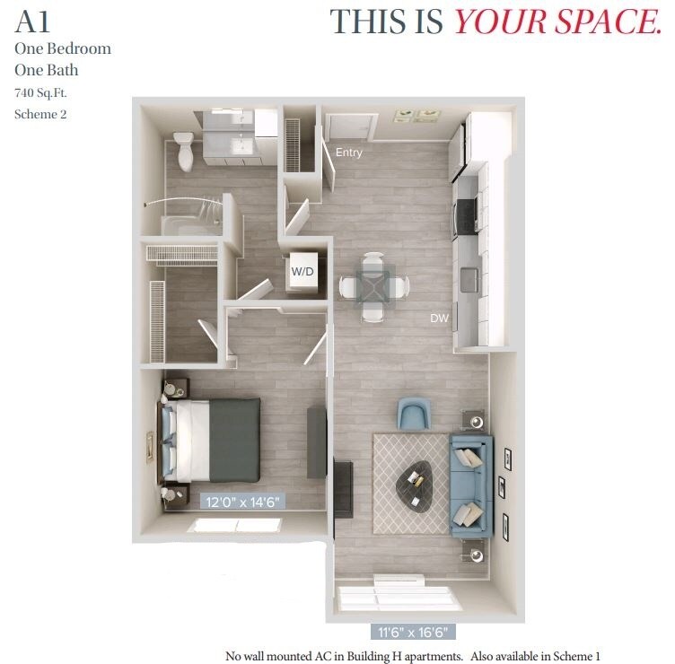 Apartment Model: A1-2$2,0251 Bedroom, 1 Bath, 740 sq ftAvailable NowFloor plans are artist's rendering. All dimensions are approximate. Actual product and specifications may vary in dimension or detail. Not all features are available in every rental home. Please see a representative for details.