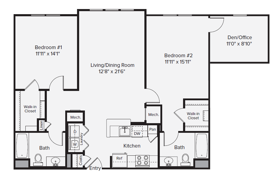 Apartment Model: C13 Bedroom, 2 Bath, 1183 sq ftAvailable June 26, 2026Floor plans are artist's rendering. All dimensions are approximate. Actual product and specifications may vary in dimension or detail. Not all features are available in every rental home. Please see a representative for details.