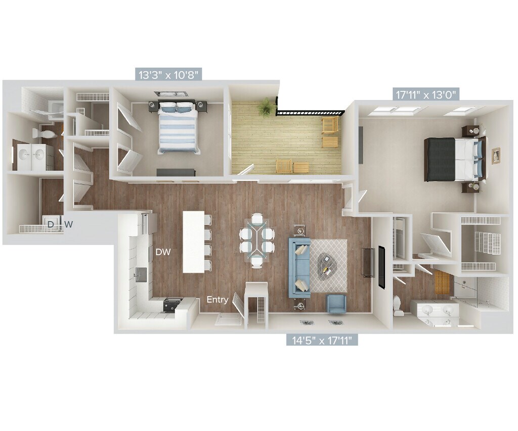 2 Beds, 2.5 Baths, 1793 sq ftTotal Monthly PriceAvailable Dec 2Largest 2 BedroomThis is the largest 2 Bedroom at this PropertyModel Gallery