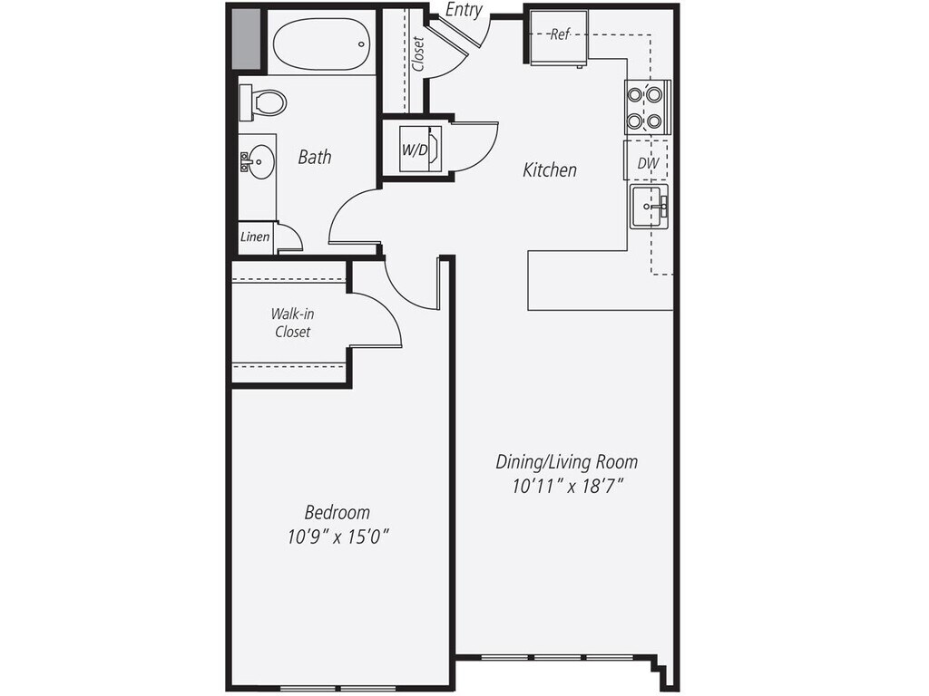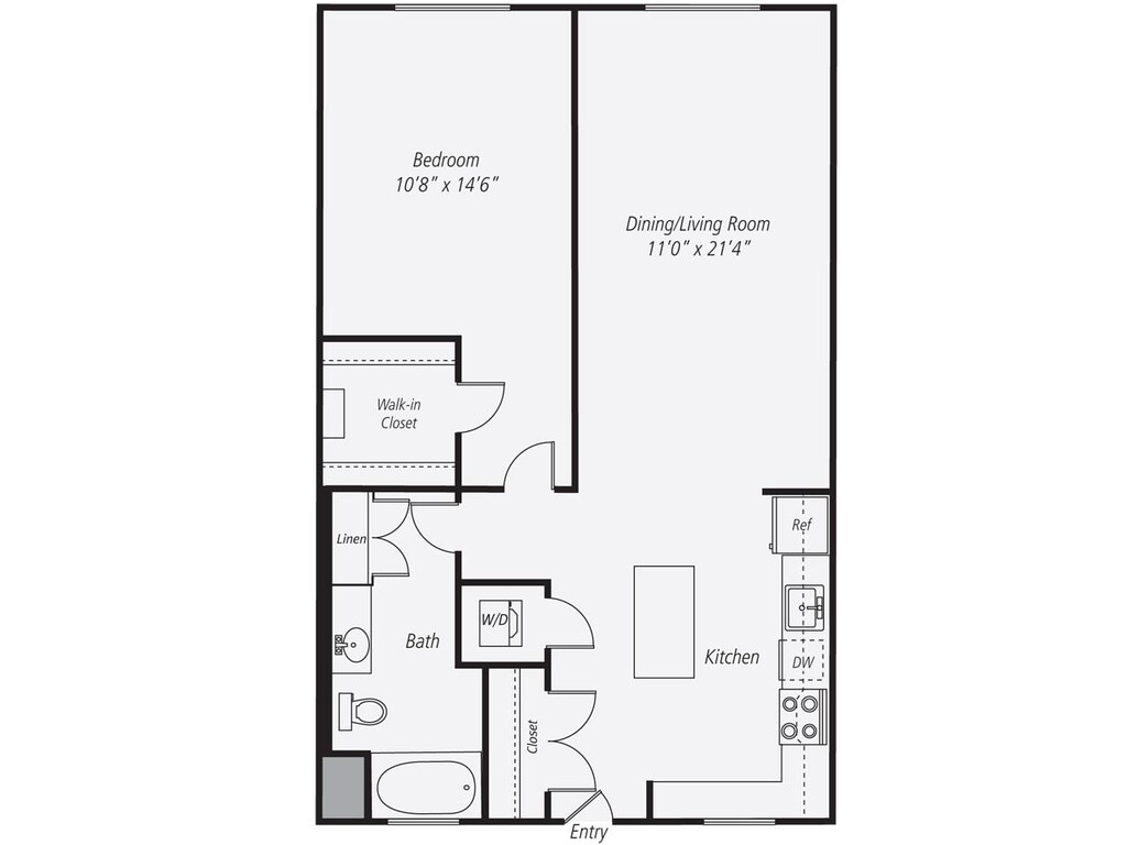 Studio, 1 Bath, 613 sq ftAvailability Details