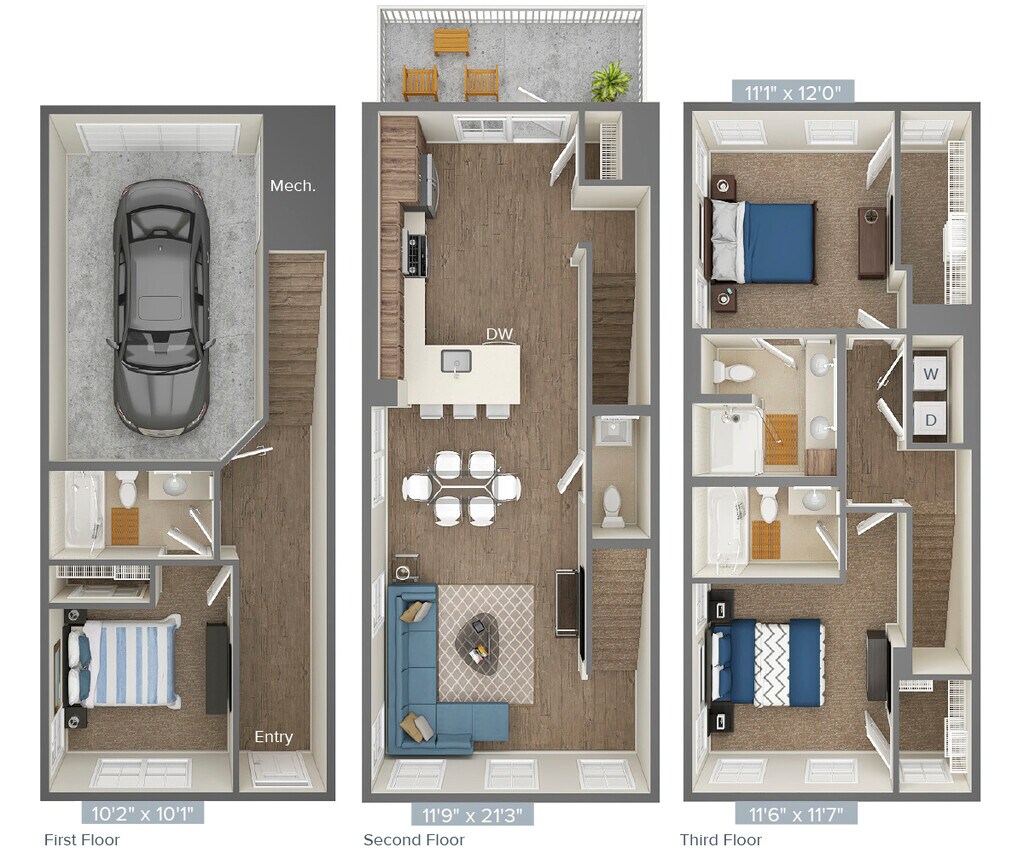 3 Beds, 3.5 Baths, 1591 sq ftAvailable NowModel Gallery