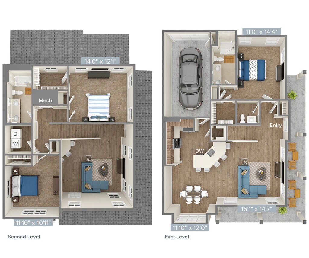 2 Beds, 2.5 Baths, 1591 sq ftAvailable SoonLargest 2 BedroomThis is the largest 2 Bedroom at this PropertyModel Gallery