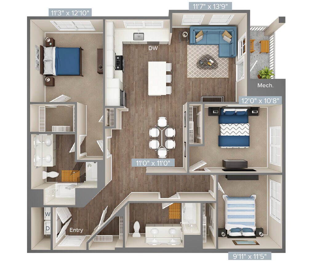 Apartment Model: BM14-1182From $2,9552 Bedroom, 2 Bath, 1182 sq ftAvailable November 7, 2025![]()