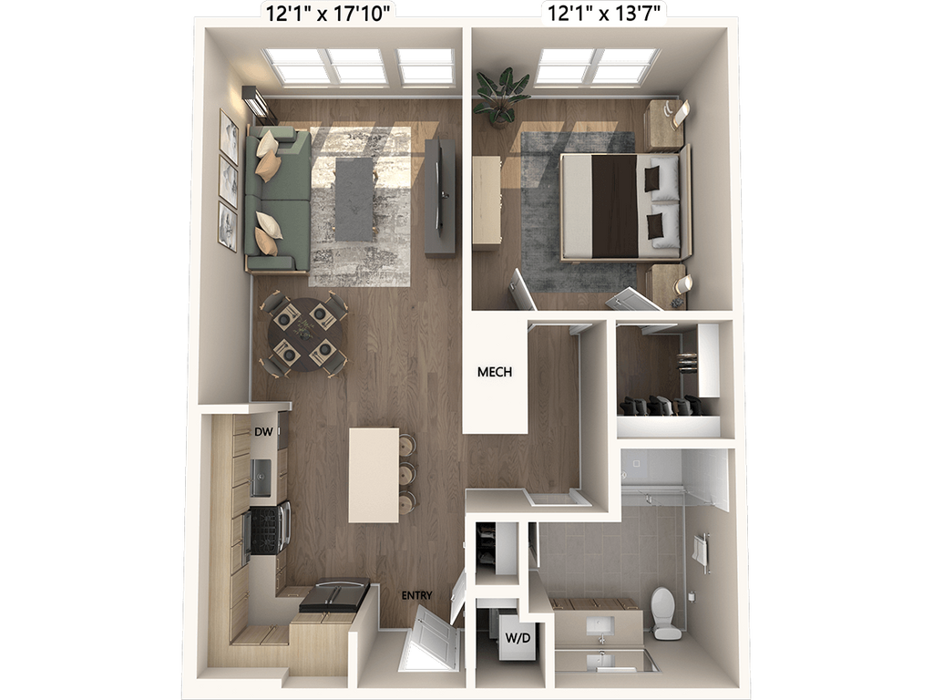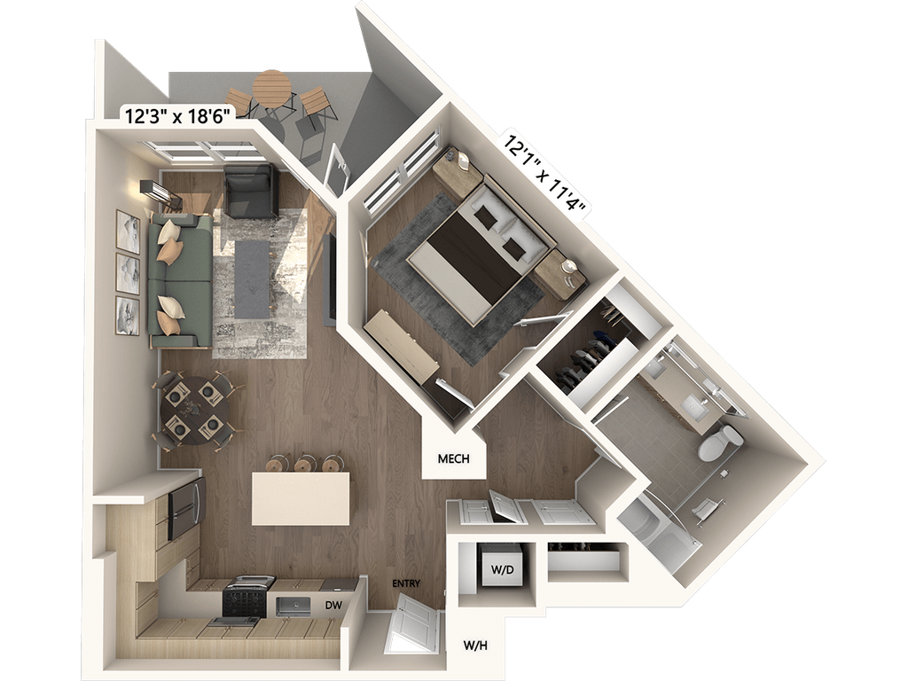Apartment Model: A1-Base$2,6101 Bedroom, 1 Bath, 677 sq ftAvailable November 8, 2025![]()