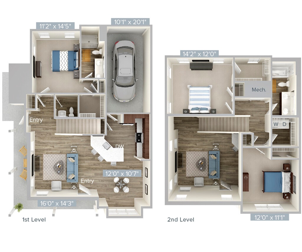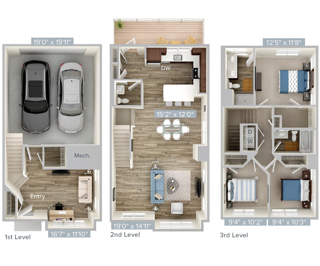 - Two- and Three-bedroom Townhomes with Attached Gar