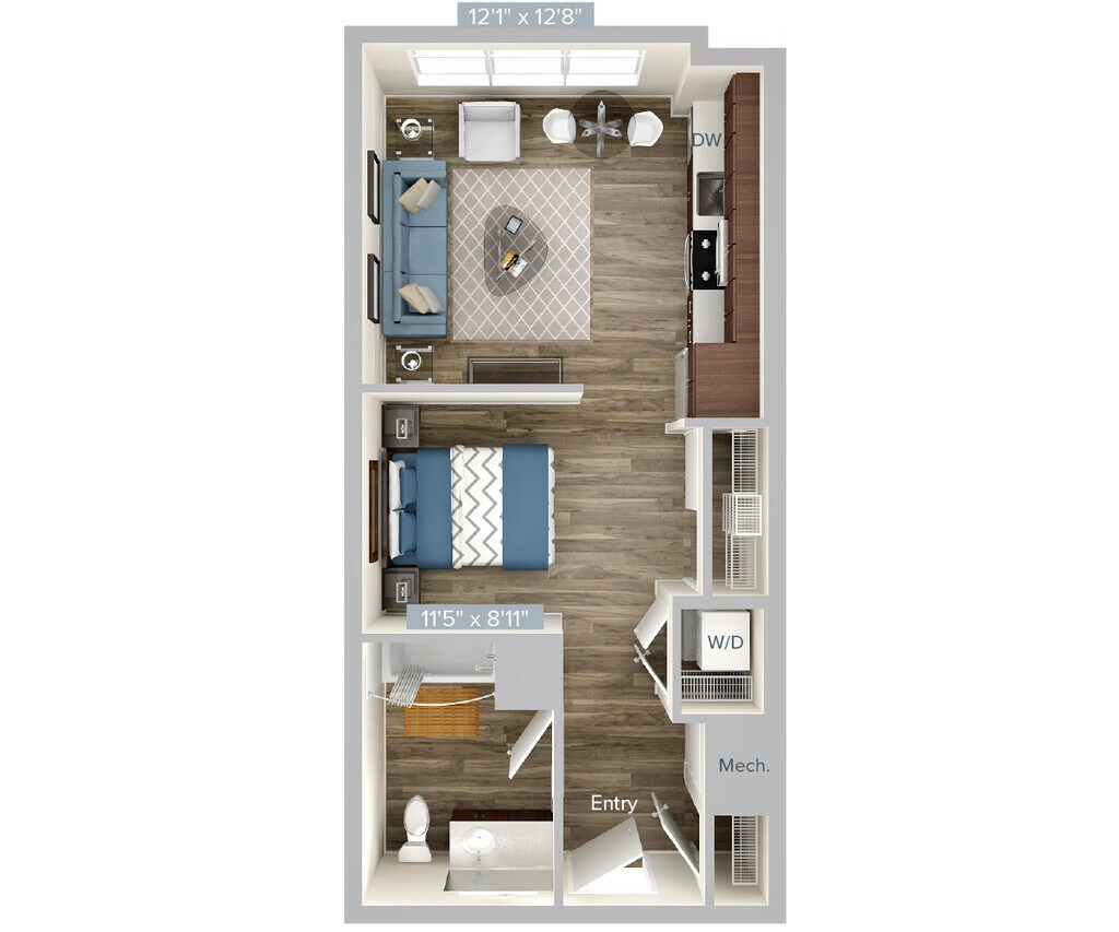 Apartment Model: S1-523$2,340Studio, 1 Bath, 523 sq ftAvailable July 1, 2026Floor plans are artist's rendering. All dimensions are approximate. Actual product and specifications may vary in dimension or detail. Not all features are available in every rental home. Please see a representative for details.
