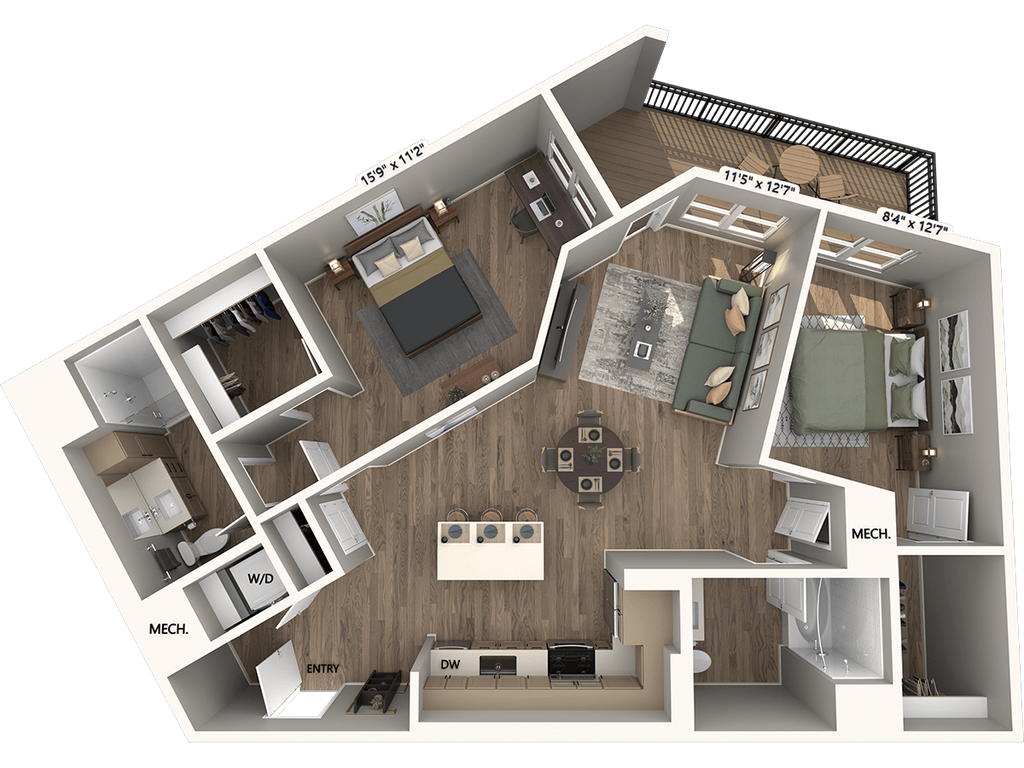 2 Beds, 2 Baths, 1162 sq ftAvailable NowLargest 2 BedroomThis is the largest 2 Bedroom at this PropertyModel Gallery