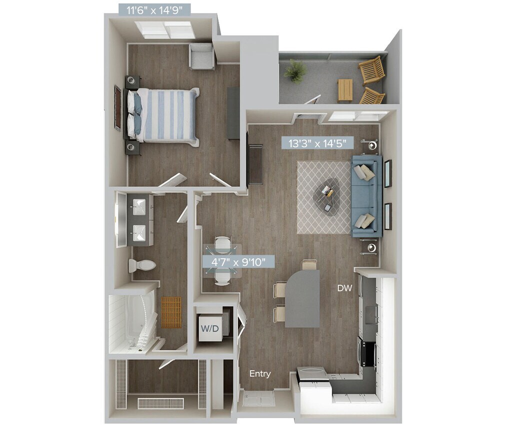 Apartment Model: A4U-747$3,3701 Bedroom, 1 Bath, 747 sq ftAvailable December 1, 2025![]()