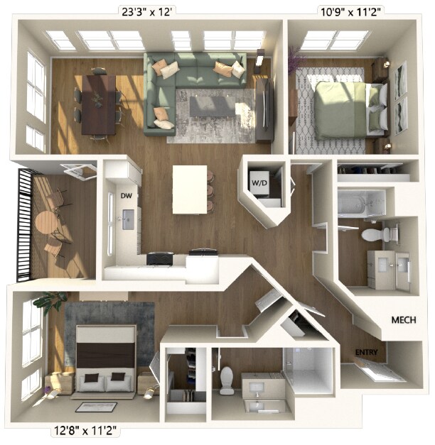 Apartment Model: A2-694-1-1$2,8061 Bedroom, 1 Bath, 694 sq ftAvailable March 18, 2026Floor plans are artist's rendering. All dimensions are approximate. Actual product and specifications may vary in dimension or detail. Not all features are available in every rental home. Please see a representative for details.