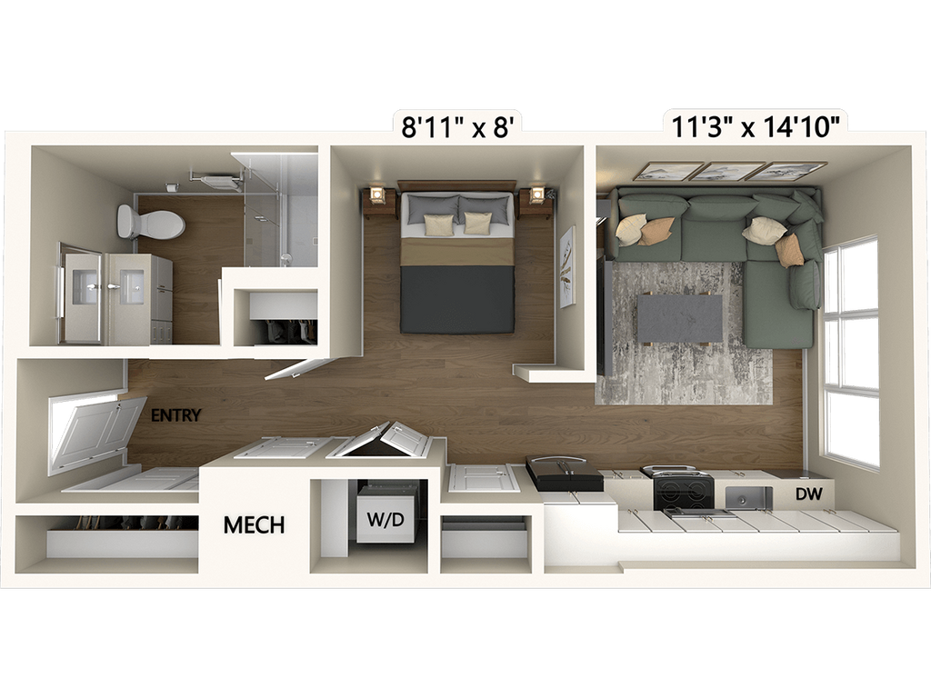 Apartment Model: S1-507-1$2,371Studio, 1 Bath, 507 sq ftAvailable April 15, 2026Floor plans are artist's rendering. All dimensions are approximate. Actual product and specifications may vary in dimension or detail. Not all features are available in every rental home. Please see a representative for details.