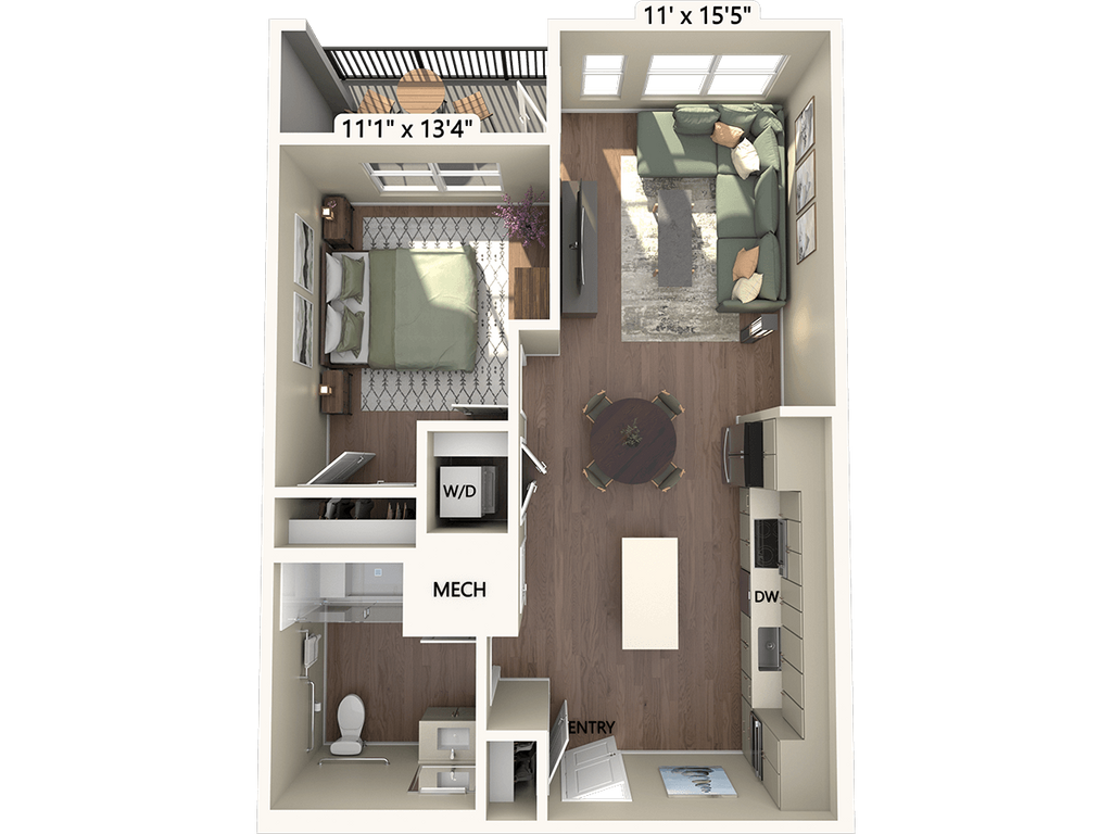 Studio, 1 Bath, 507 sq ftTotal Monthly PriceAvailable Apr 15Model Gallery