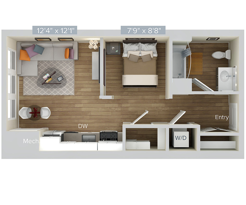 Studio, 1 Bath, 504 sq ftTotal Monthly PriceAvailable NowModel Gallery