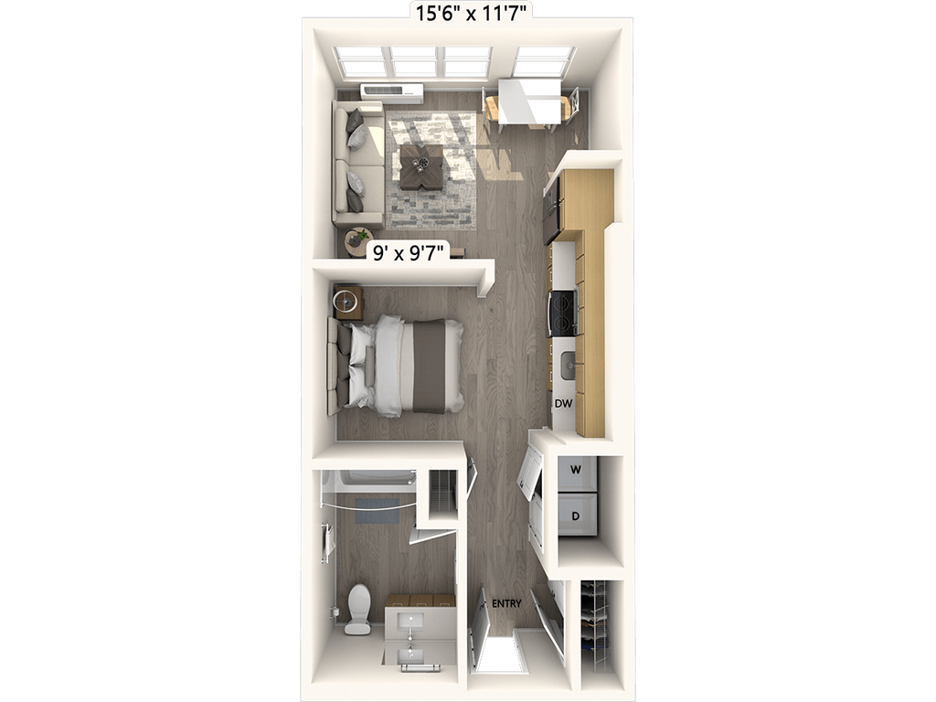 Studio, 1 Bath, 501 sq ftAvailable NowModel Gallery